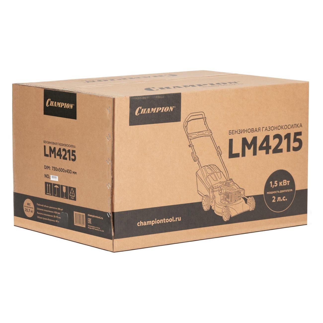 Вы можете купить Газонокосилка Champion LM4215 в магазинах М.Видео по доступной цене. Газонокосилка Champion LM4215: подробное описание, фото и отзывы реальных покупателей, характеристики, возможность скачать инструкции и подобрать аксессуары.