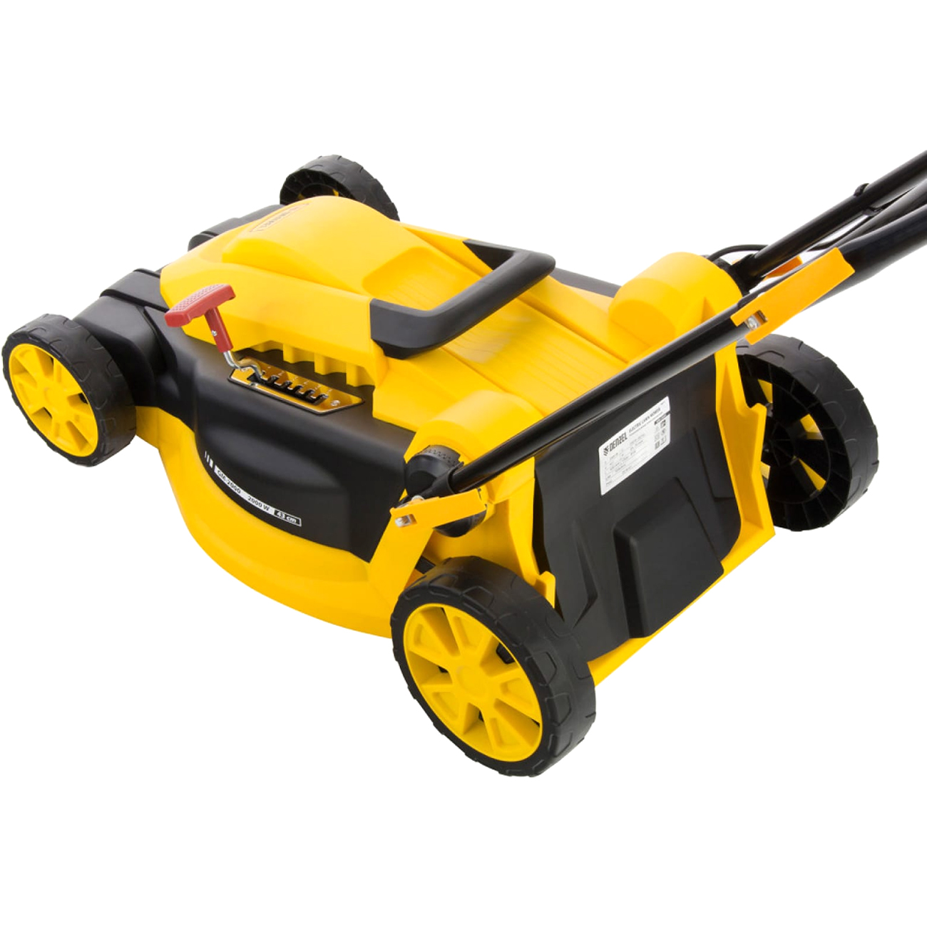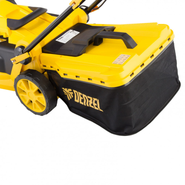 Газонокосилка электрическая Denzel GM-2000 оборудована двигателем мощностью 2000 Вт. Модель оптимальна для обработки территории площадью 800 кв. м. Для сбора травы есть вместительный тканевый травосборник, который не требуется часто опустошать. Элементы управления устройством вынесены на ручку. Для комфортной проходимости по участку есть четыре широких колеса, которые не приминают газон. Встроенный предохранитель защищает двигатель от перегрева при долгой работе без перерыва.