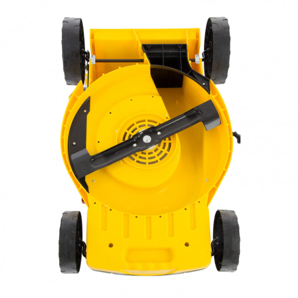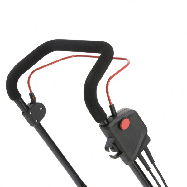 Для мгновенной остановки вращения ножа есть особый центробежный тормоз. О заполненности травосборника уведомляет специальный индикатор. В зависимости от роста можно регулировать длину ручки. Максимальная высота скашивания составляет 70 мм, минимальная — 20 мм. Прочный острый нож позволяет срезать даже густую траву. На корпусе расположена ручка, которая способствует комфортной транспортировке модели. Газонокосилка функционирует от сети переменного тока с напряжением 220 В.