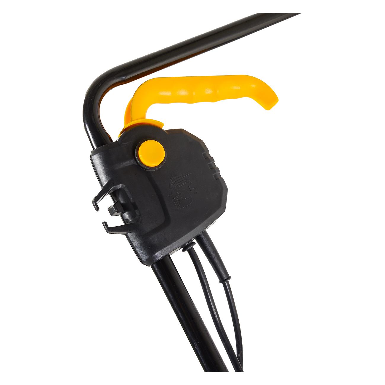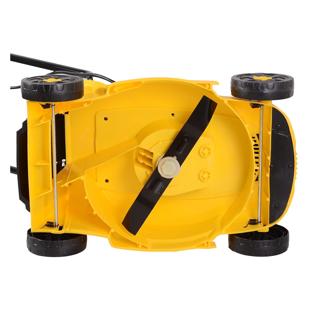 Электрическая газонокосилка Huter ELM-1300/33 черного-желтого цвета выполнена в стальном корпусе с четырьмя колесами, обеспечивающими легкость передвижения, и выносной ручкой с возможностью регулировки длины. Инструмент работает от двигателя мощностью 1,3 кВт, который развивает скорость вращения до 3500 об/мин, высоту среза можно регулировать от 20 мм до 55 мм, ширина — 330 мм. Для сбора скошенной травы используется травосборник объемом 30 л, который благодаря перфорированному корпусу позволяет отслеживать степень его наполненности