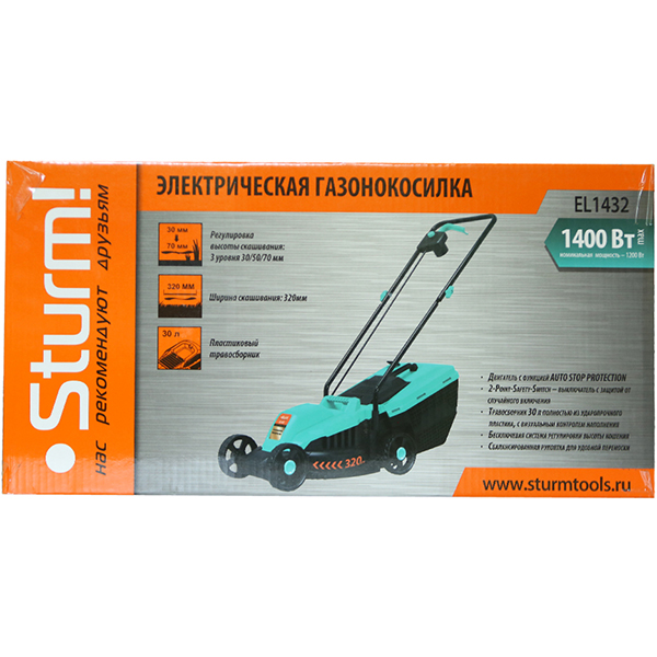 Вы можете купить Газонокосилка электрическая Sturm! EL1432 в магазинах М.Видео по доступной цене. Газонокосилка электрическая Sturm! EL1432: подробное описание, фото и отзывы реальных покупателей, характеристики, возможность скачать инструкции и подобрать аксессуары.