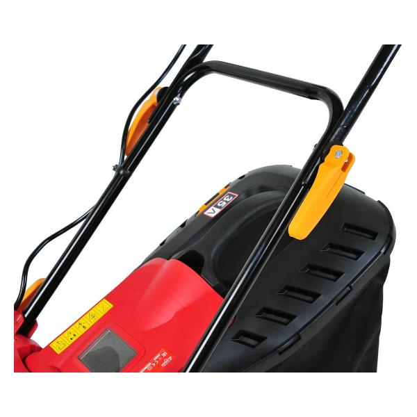 Газонокосилка электрическая Elitech ЕК 1000Н (E1601.003.00) предназначена для ухода за газоном площадью до 2000 м². Мощность электрического двигателя — 1,4 кВт. Скорость вращения — 3200 об/мин. Диаметр задних и передних колес — 14 см. Ширина скашивания — 34 см. Имеет три уровня высоты скашивания — от 20 до 70 мм. В комплекте предусмотрен травосборник с индикатором заполнения объемом 35 литров. Складная ручка делает хранение устройства максимально компактным.