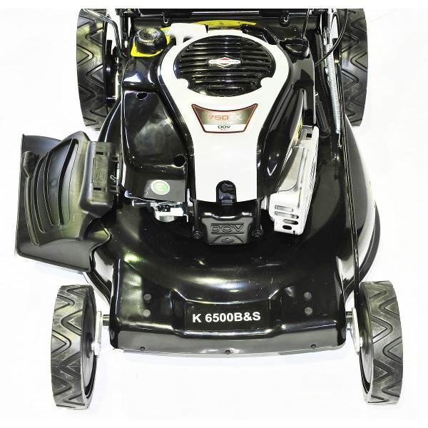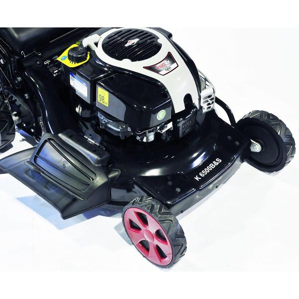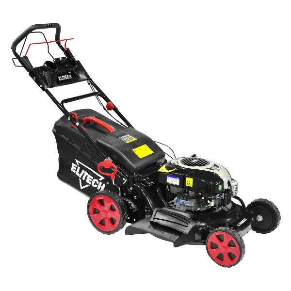 Бензиновая газонокосилка Elitech К 6500B&S черного цвета с семью уровнями скашивания оснащена четырехтактным двигателем мощностью 6,6 л. с. Бак вмещает до 1 л топлива. Корпус сделан из прочной стали, колеса — из пластика. Присутствует антивибрационная система. Габариты модели — 62х95х48 см. Вес изделия — 37 кг. В комплектацию входит набор ключей, мульчирующая насадка, нож и травосборник объемом 60 л. Диаметр задних колес составляет 25 см, передних — 20 см. Высота скашивания варьируется от 2,5 до 7,5 см. Индикатор показывает степень заполнения травосборника.