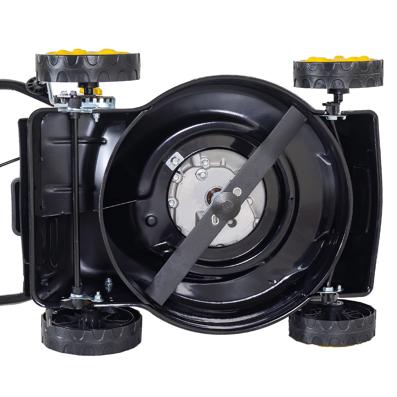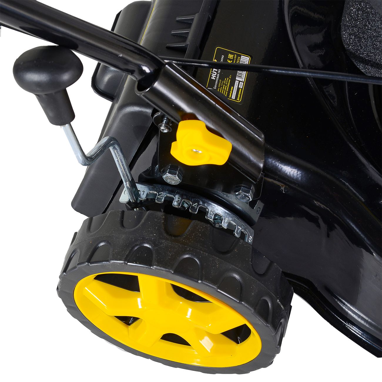 Работать с такой газонокосилкой удобно, незамысловатое управление, все необходимое в прямом смысле под рукой, на рукоятке и небольшой вес. Высоту среза можно регулировать по настроению и высоте травы, имеется 7 уровней от 25 до 75 мм. Усилий особых не прикладываю, просто направляю.