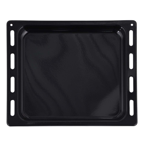 Духовка с металлическими направляющими и термометром разогревается до максимальной температуры 270°C. Посуду и утварь можно хранить во встроенном ящике. Эмалированное покрытие легко очищается от загрязнений. В комплекте идет глубокий противень.