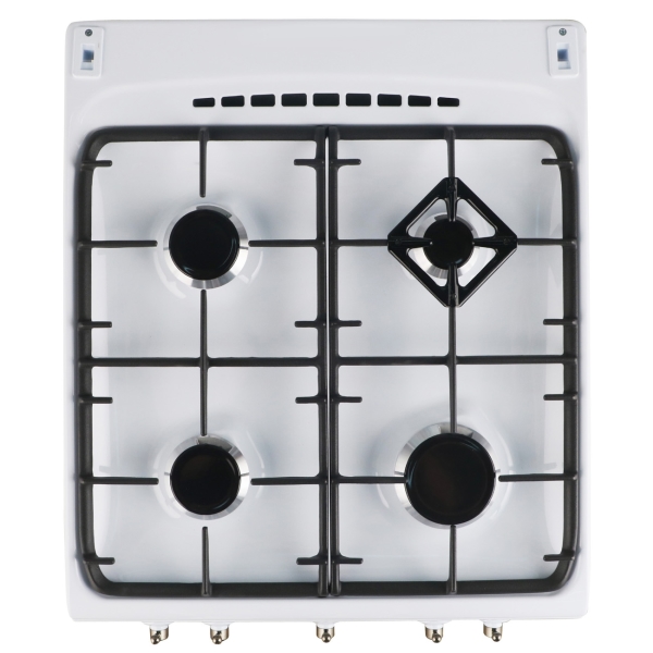 Газовая плита Gefest ПГ 5100-02 снабжена четырьмя конфорками, установленными на эмалированном рабочем столе. Она укомплектована массивными чугунными решётками, позволяющими аккуратно передвигать тяжёлую посуду.