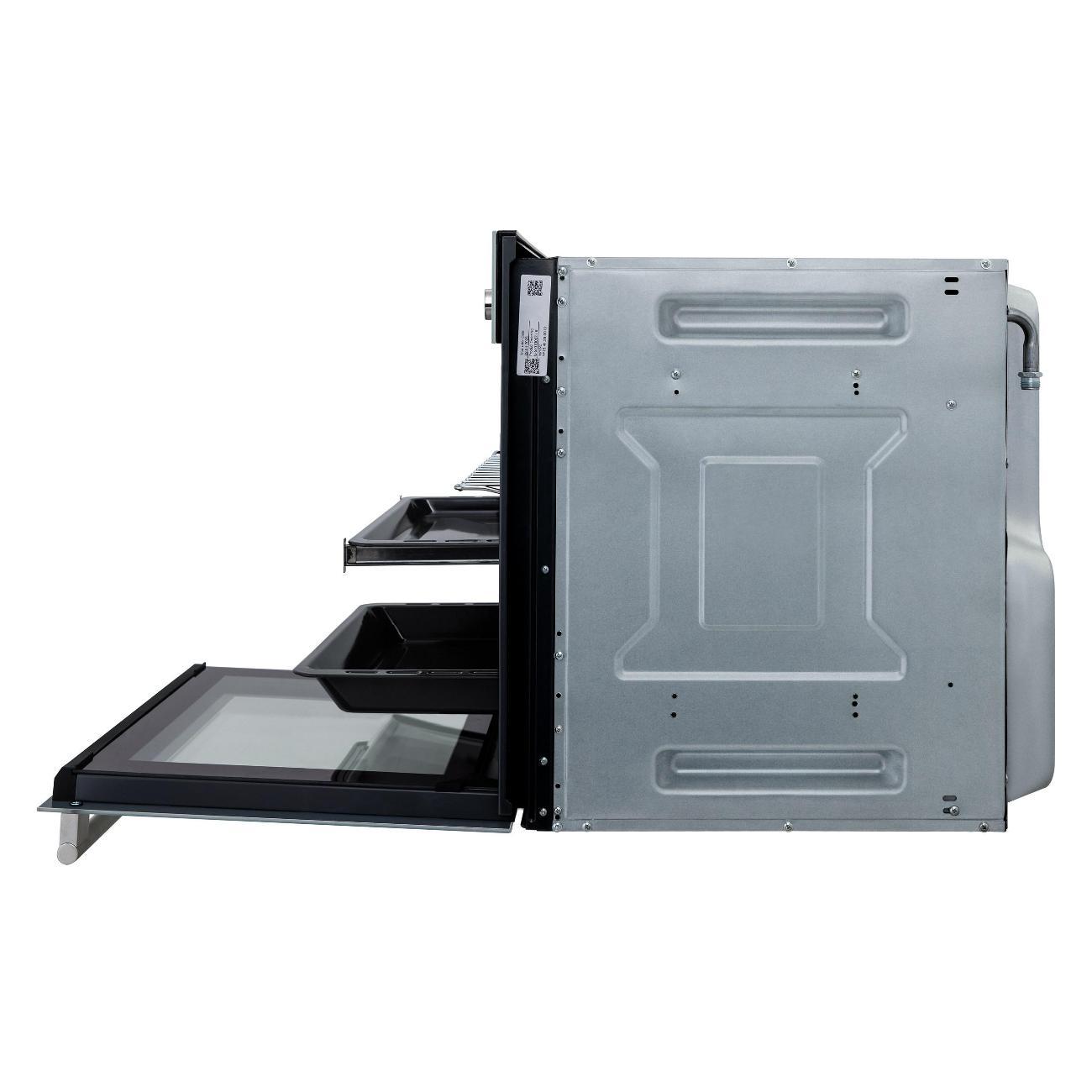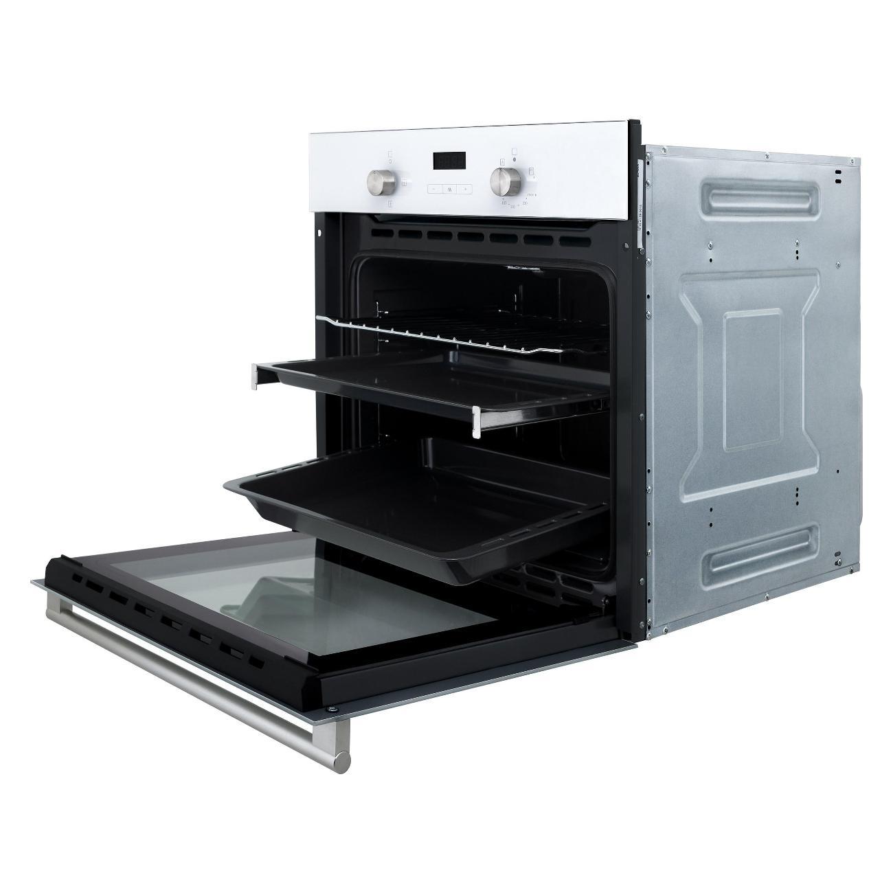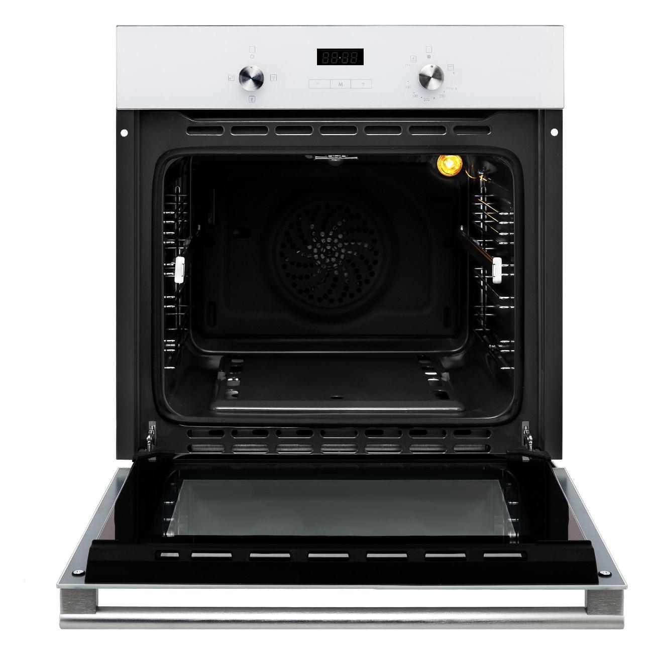 За счет оптимального объема 60 л можно готовить несколько блюд одновременно. Для выбора режима следует воспользоваться механическими поворотными регуляторами, которые расположены на лицевой панели корпуса. Дверца предусматривает тройное остекление, которое не нагревается в процессе эксплуатации, благодаря чему исключается риск получения ожога.