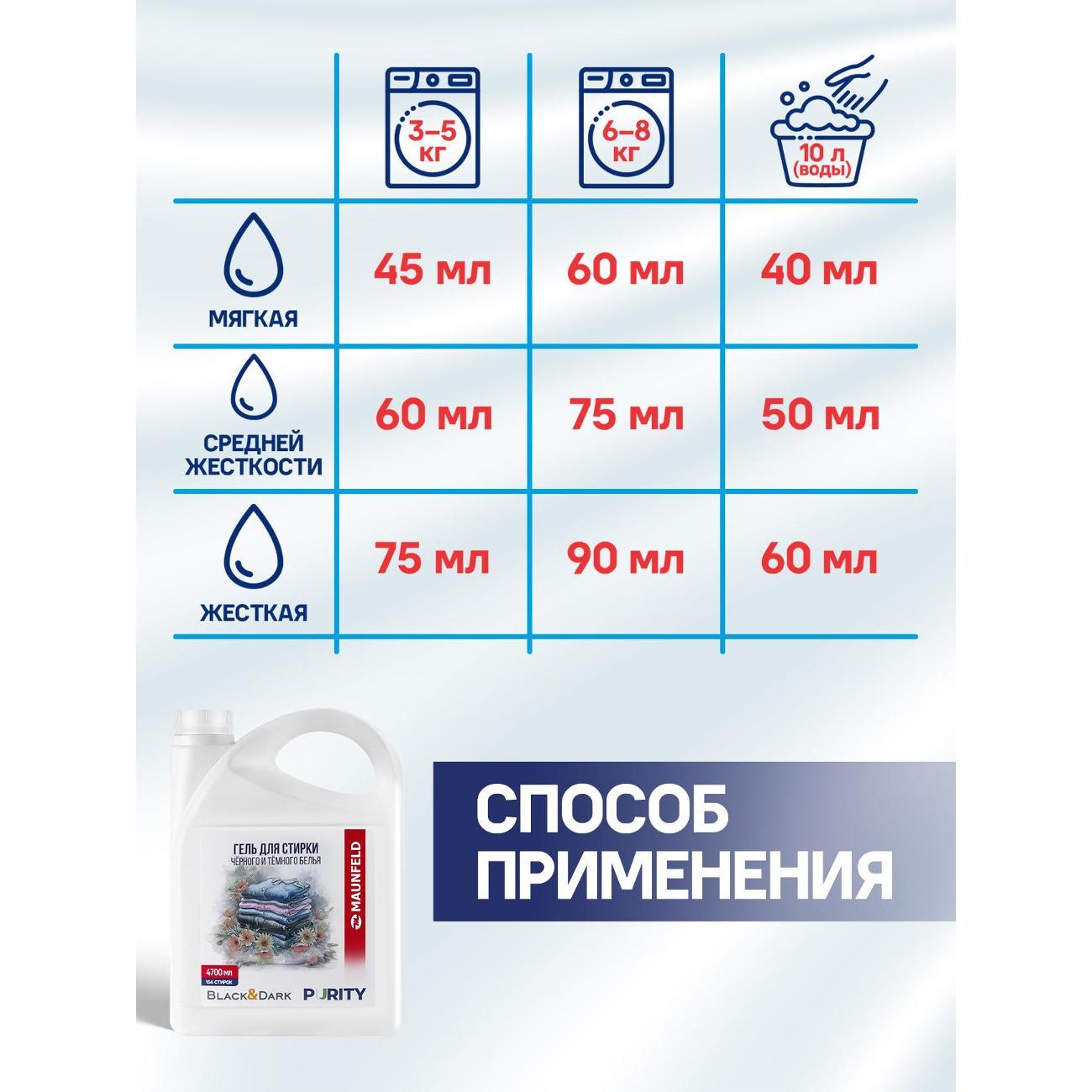 Вы можете купить Гель для стирки Maunfeld Purity Black&Dark, 4.7л в магазинах М.Видео по доступной цене. Гель для стирки Maunfeld Purity Black&Dark, 4.7л: подробное описание, фото и отзывы реальных покупателей, характеристики, возможность скачать инструкции и подобрать аксессуары.