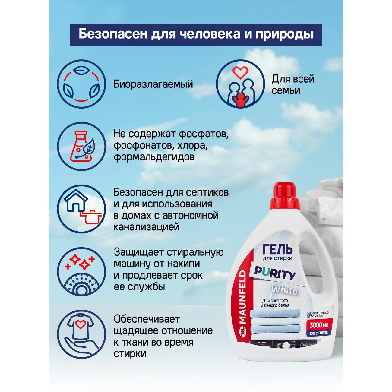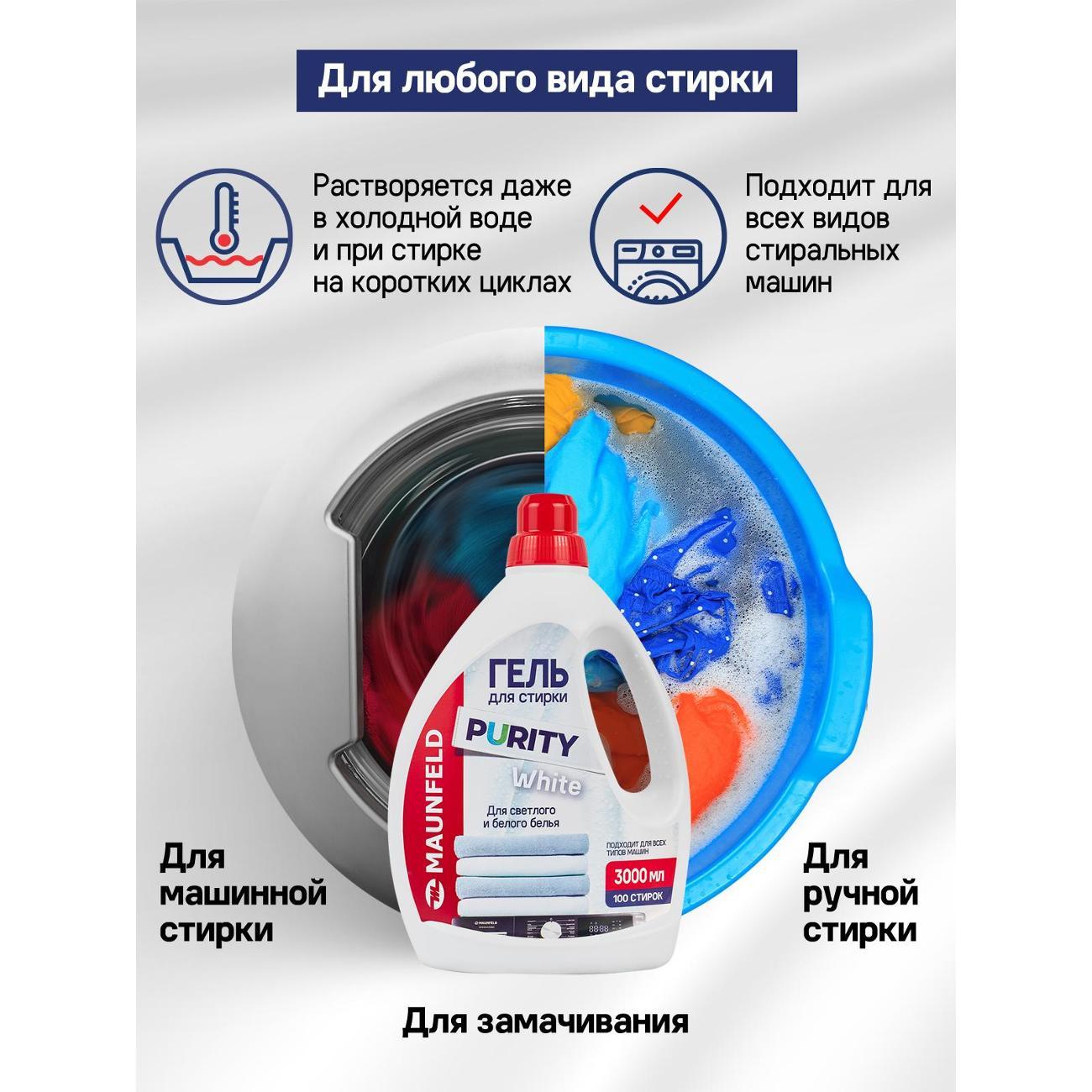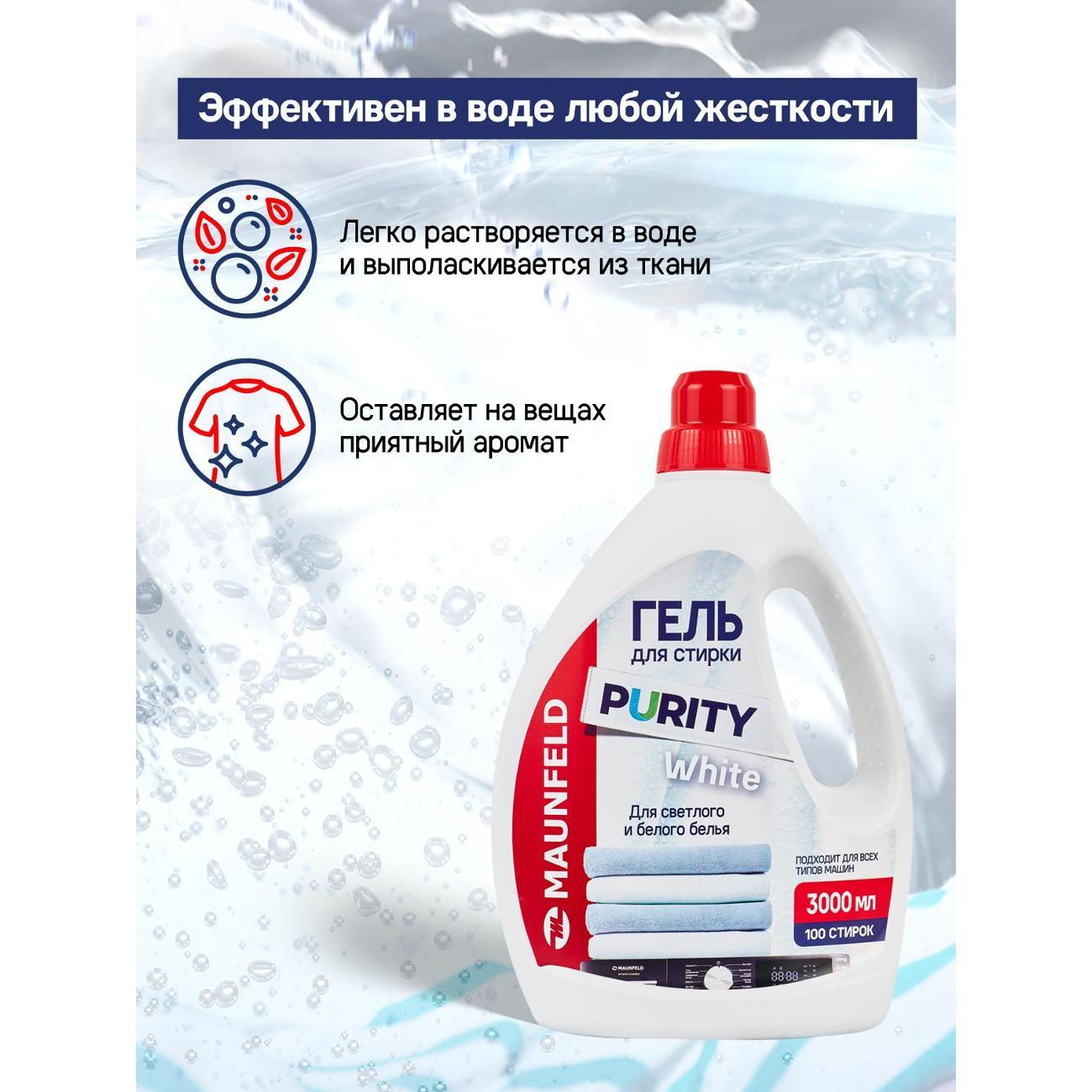 Вы можете купить Гель для стирки Maunfeld Purity White 3л в магазинах М.Видео по доступной цене. Гель для стирки Maunfeld Purity White 3л: подробное описание, фото и отзывы реальных покупателей, характеристики, возможность скачать инструкции и подобрать аксессуары.