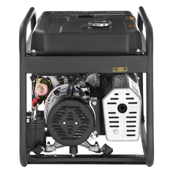 Генератор оснащен прочной металлической рамой, которая защищает конструкцию от ударов и позволяет устанавливать ее на любой горизонтальной поверхности. Для устойчивости устройства предусмотрены нескользящие ножки. Счетчик моточасов позволяет контролировать состояние оборудования. Стальной корпус с защитной степенью IP23 устойчив к проникновению внутрь механизма инородных тел. Модель оснащена удобной ручкой для переноски.
