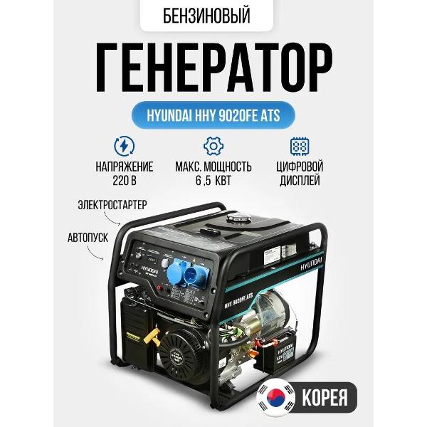 Бензиновый генератор Hyundai HHY 9020FE ATS подходит для резервного питания техники и зарядки аккумуляторов при затруднительном подключении к сети. Для работы устройства требуется бензин АИ-92, который заливается в топливный бак объемом 25 л. Максимальная мощность прибора составляет 6500 Вт, предельная сила тока — 32 А, частота — 50 Гц. Величина выходного напряжения — 230 В. Оборудование охлаждается воздушным способом.