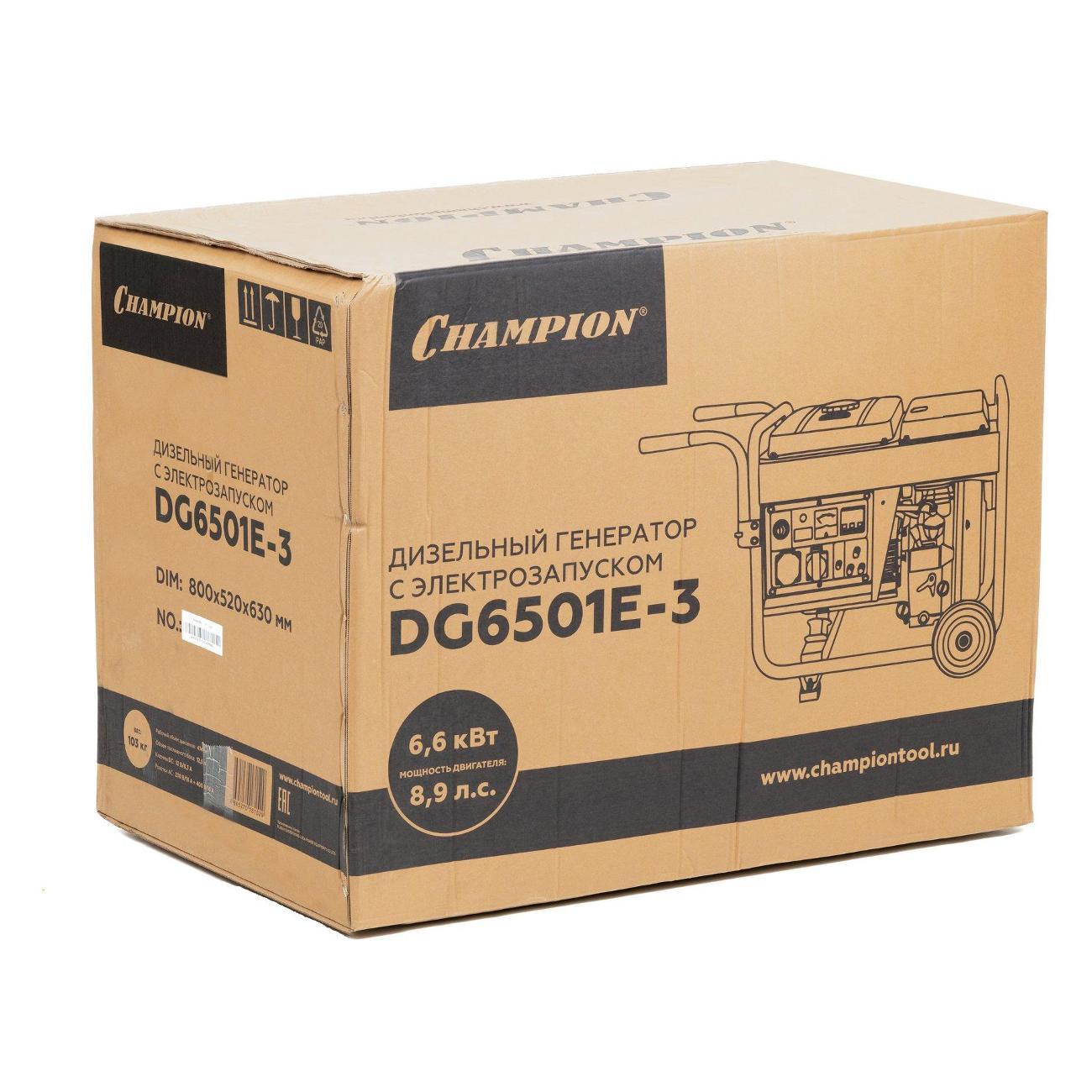Вы можете купить Генератор Champion DG6501E-3 в магазинах М.Видео по доступной цене. Генератор Champion DG6501E-3: подробное описание, фото и отзывы реальных покупателей, характеристики, возможность скачать инструкции и подобрать аксессуары.