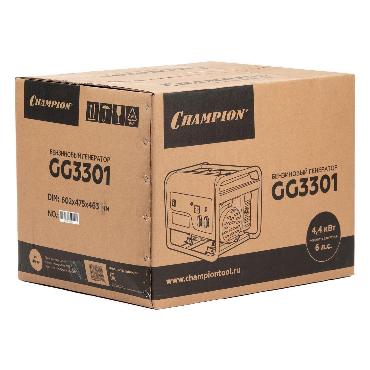 Вы можете купить Генератор Champion GG3301 в магазинах М.Видео по доступной цене. Генератор Champion GG3301: подробное описание, фото и отзывы реальных покупателей, характеристики, возможность скачать инструкции и подобрать аксессуары.