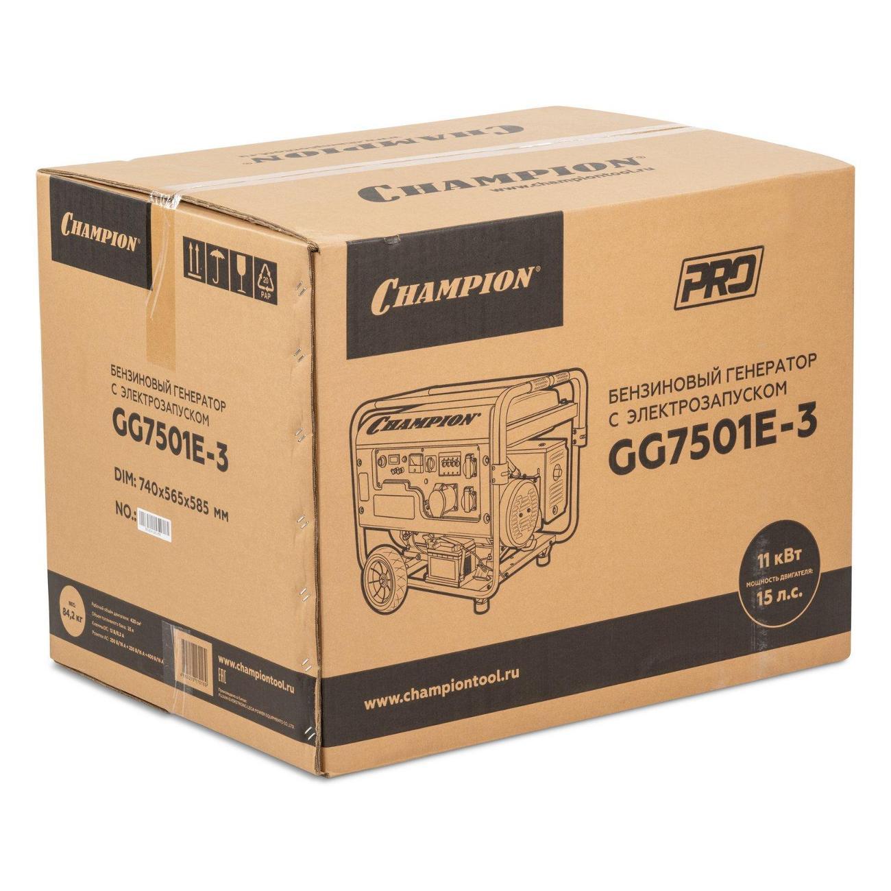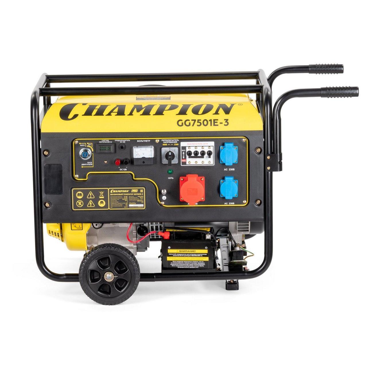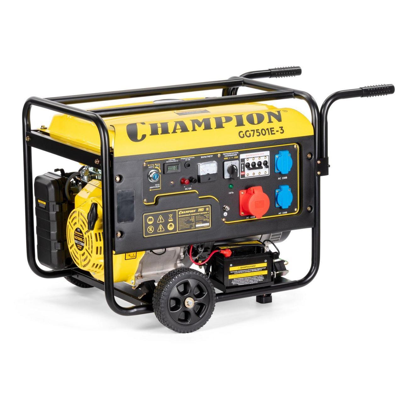 Вы можете купить Генератор Champion GG7501E-3 в магазинах М.Видео по доступной цене. Генератор Champion GG7501E-3: подробное описание, фото и отзывы реальных покупателей, характеристики, возможность скачать инструкции и подобрать аксессуары.