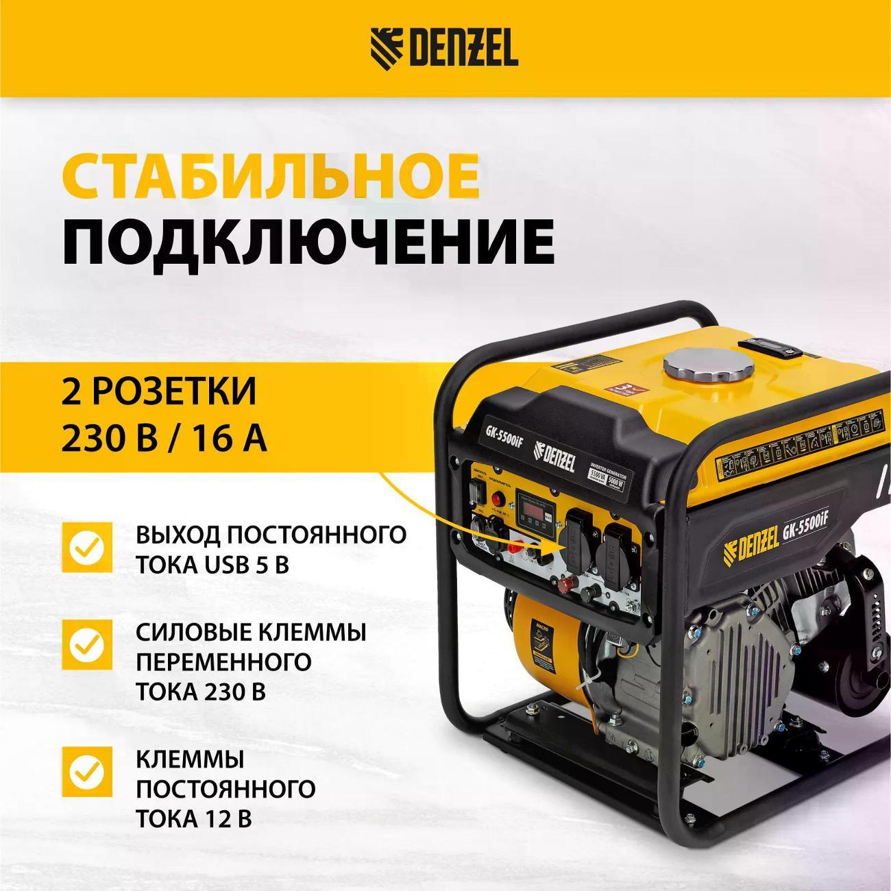Вы можете купить Генератор DENZEL GK-5500iF в магазинах М.Видео по доступной цене. Генератор DENZEL GK-5500iF: подробное описание, фото и отзывы реальных покупателей, характеристики, возможность скачать инструкции и подобрать аксессуары.