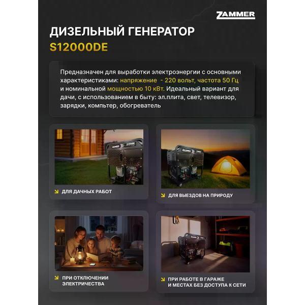 Вы можете купить Генератор Zammer S12000DE в магазинах М.Видео по доступной цене. Генератор Zammer S12000DE: подробное описание, фото и отзывы реальных покупателей, характеристики, возможность скачать инструкции и подобрать аксессуары.