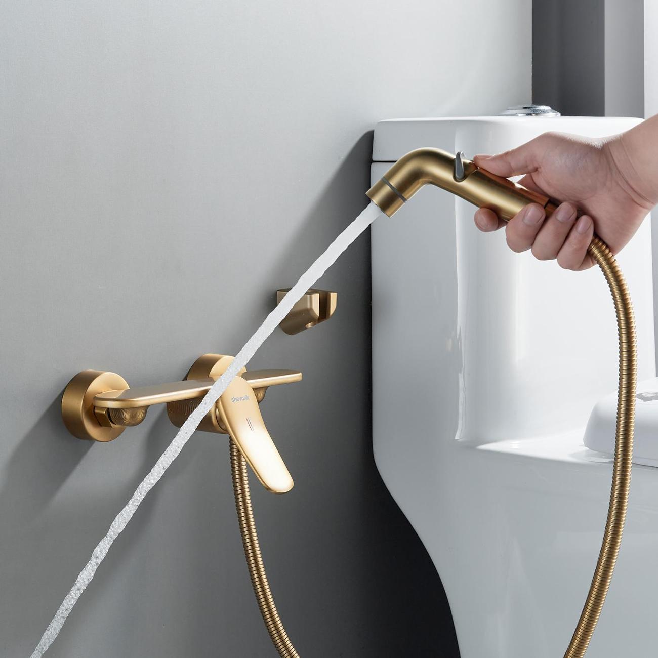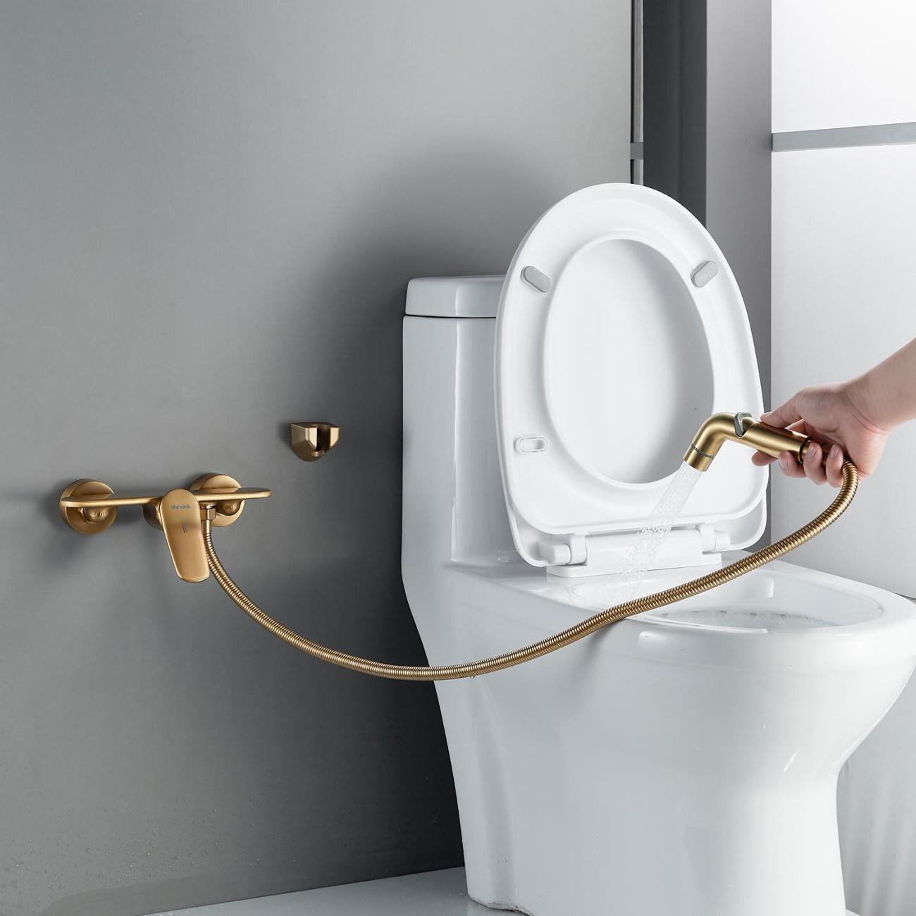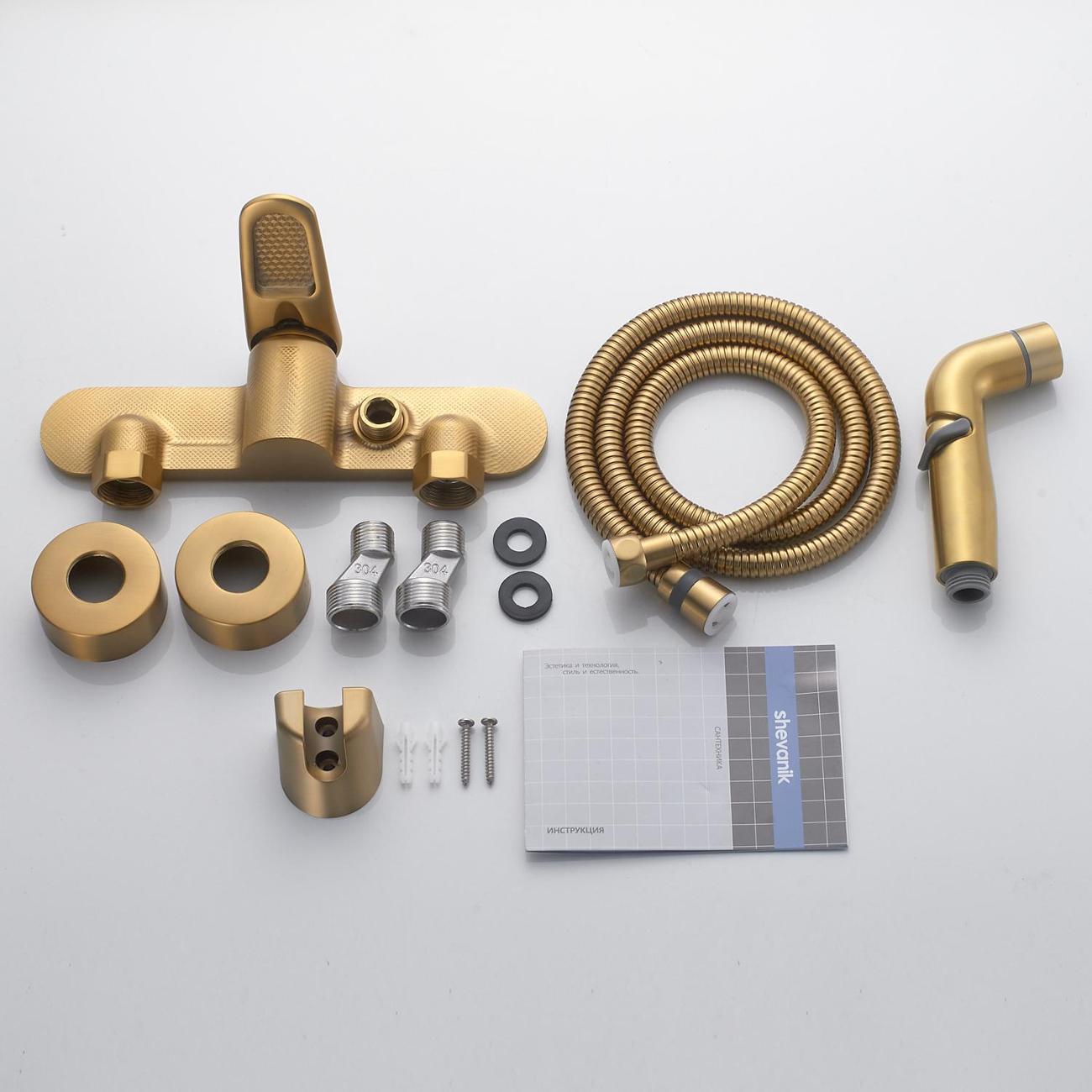 Гигиенический душ Shevanik S4705G-1 в цвете "золотой сатин" — это стильное и функциональное решение для вашей ванной комнаты. Его современный минималистичный дизайн гармонично впишется в любой интерьер, а корпус из латуни гарантирует долговечность и надёжность. Верхняя часть корпуса выполнена в виде полочки для гигиенических средств, что добавляет удобство в использовании.