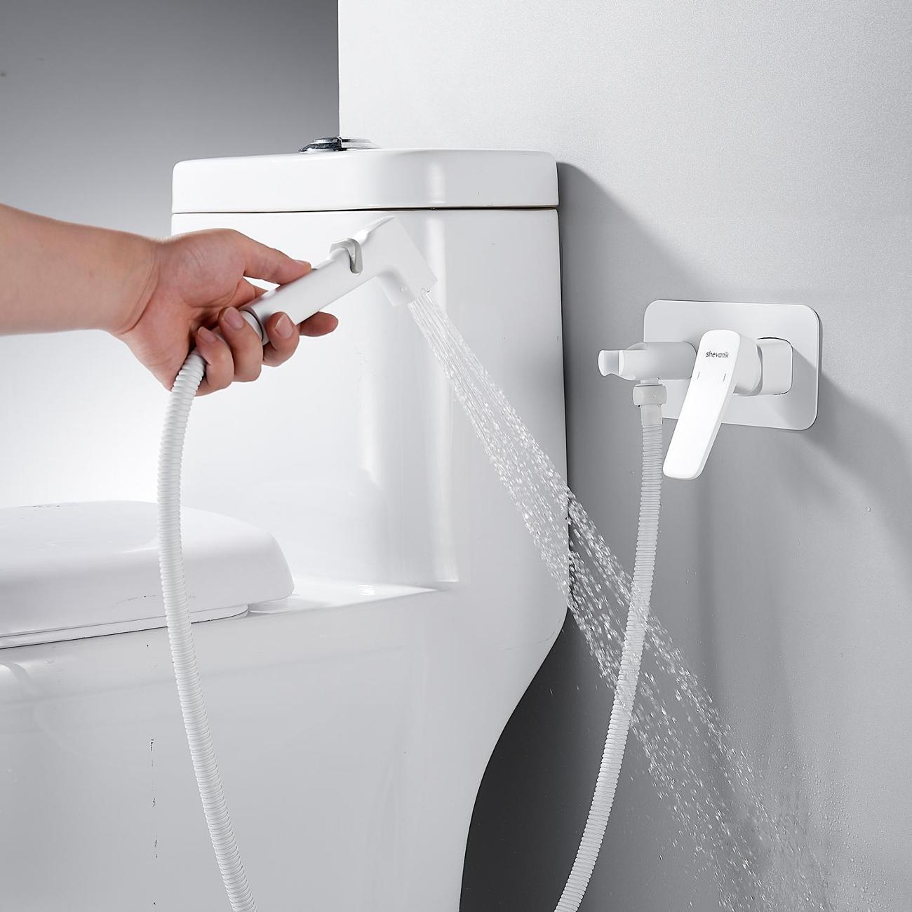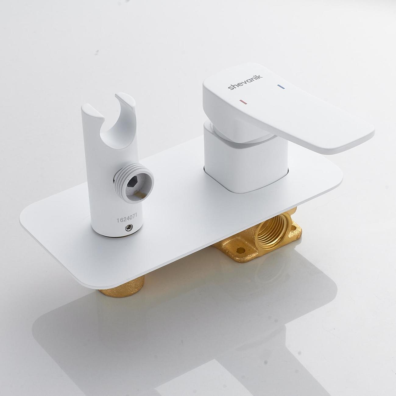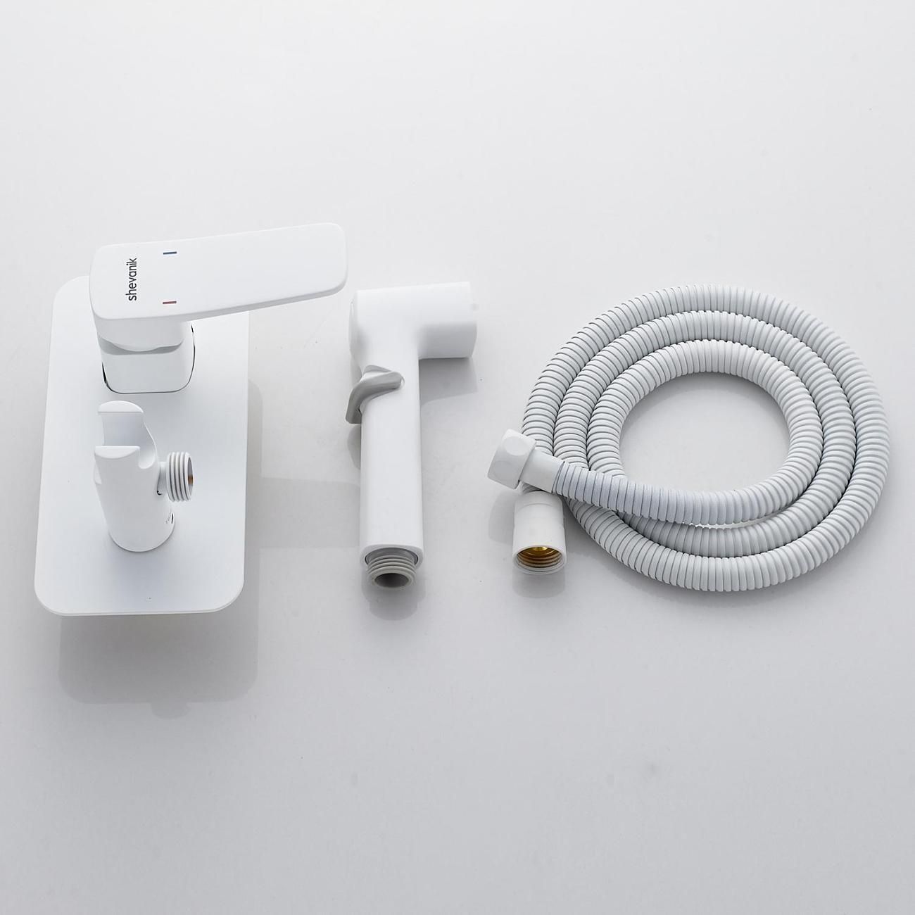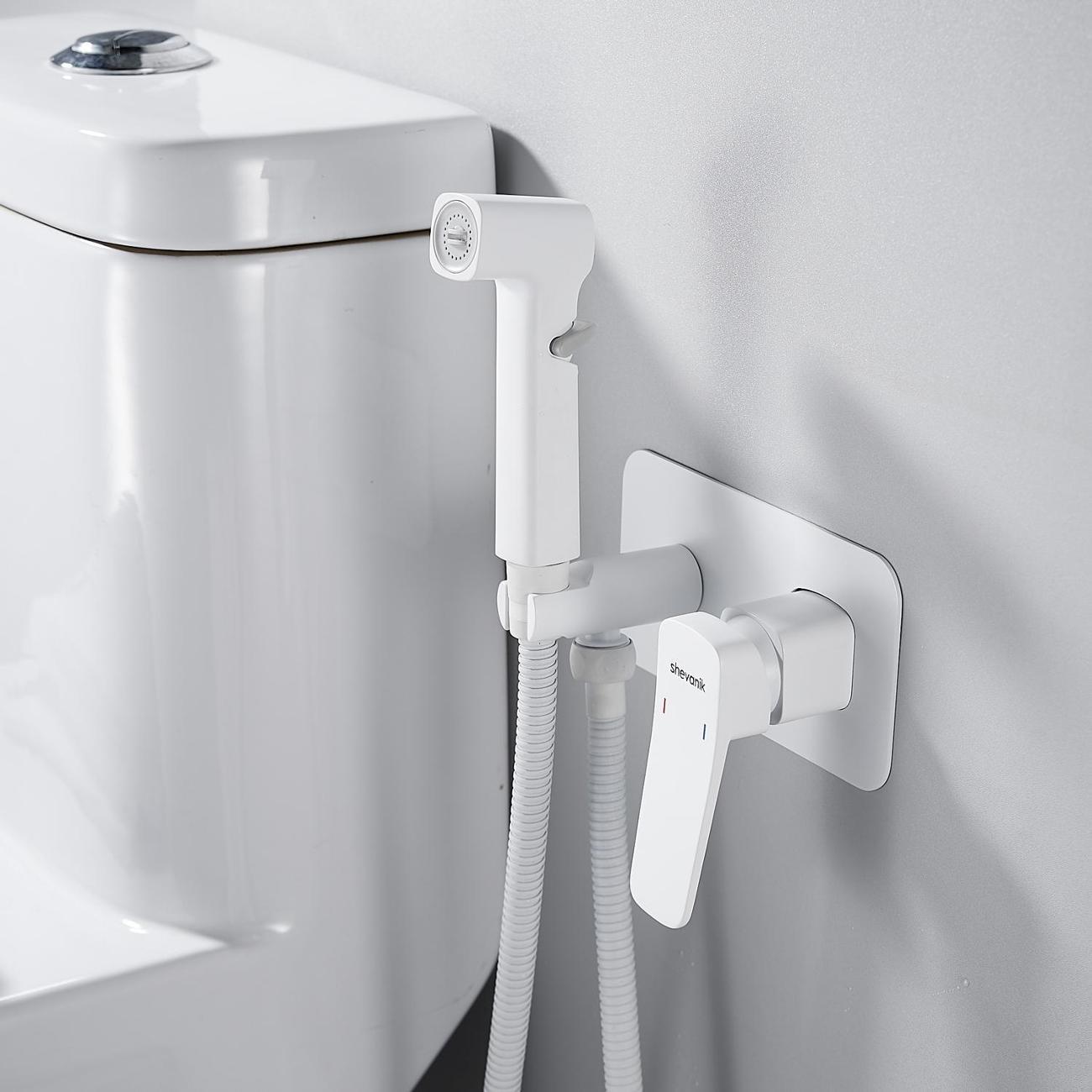 Гигиенический душ со смесителем Shevanik S9905C белого матового цвета предназначен для скрытого монтажа, благодаря чему сохраняется эстетичный вид ванной комнаты. Изготовлен из надёжной латуни, что обеспечивает долговечность и устойчивость к коррозии. Управление осуществляется с помощью керамического картриджа и рычажного механизма, гарантируя плавную и точную регулировку воды.