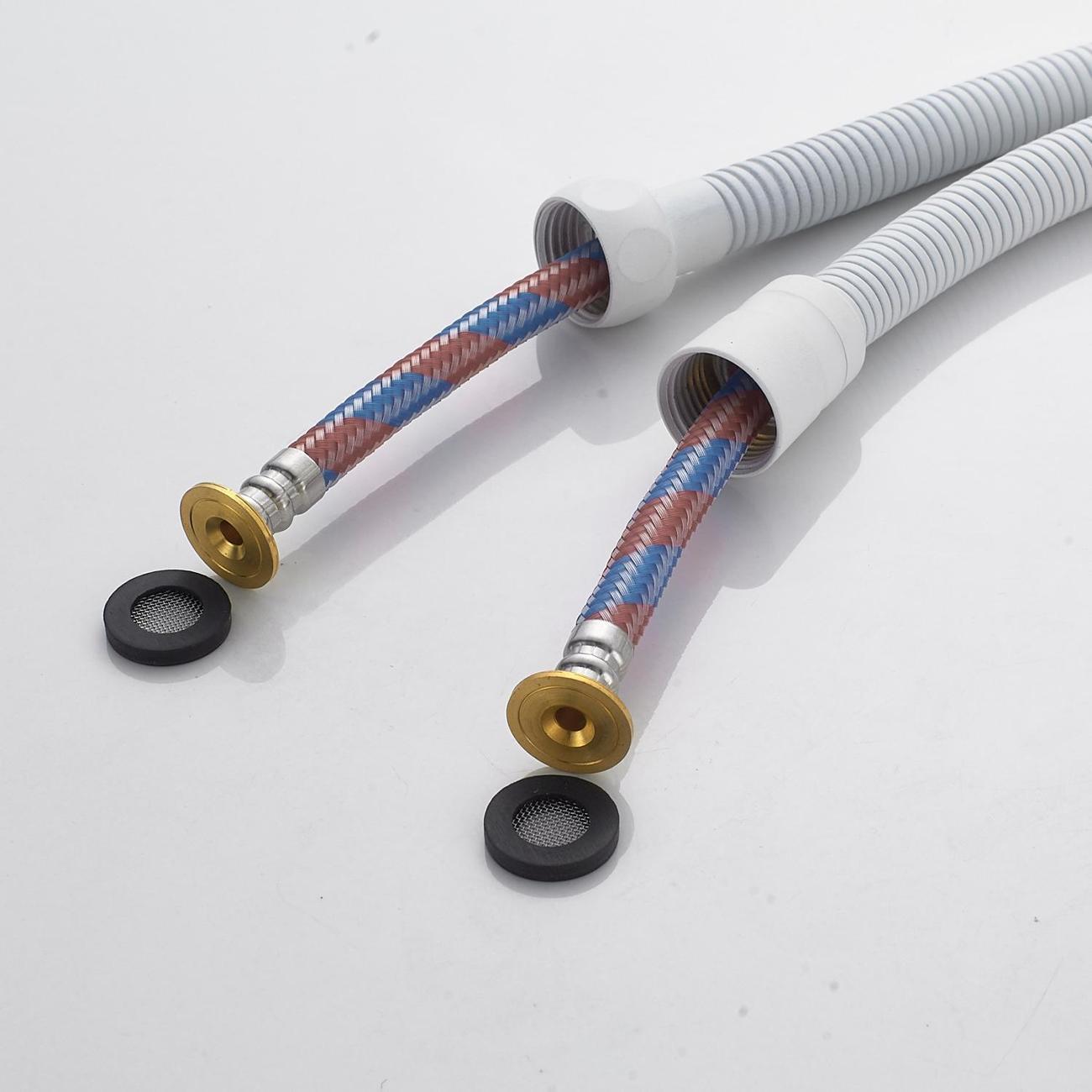 Лейка гигиенического душа выполнена из ABS пластика, её держатель удобно расположен на корпусе смесителя, что способствует удобному использованию. В комплект входит шланг в двойной металлической оплетке длиной 120 см, который отличается надежностью и защищает от повреждений.