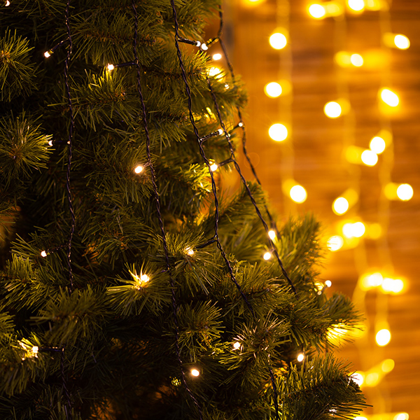 Ёлочная гирлянда Neon-Night состоит из семи нитей, на которых расположены светодиоды. Они крепятся на кольцо, которое удобно располагается на верхушке ели, а огоньки падают вниз светящимся каскадом.