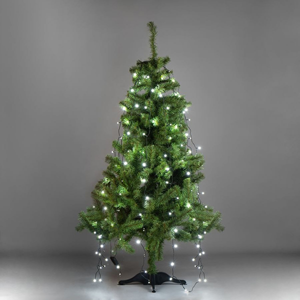 Ёлочная гирлянда Neon-Night состоит из семи нитей, на которых расположены светодиоды. Они крепятся на кольцо, которое удобно располагается на верхушке ели, а огоньки падают вниз светящимся каскадом.