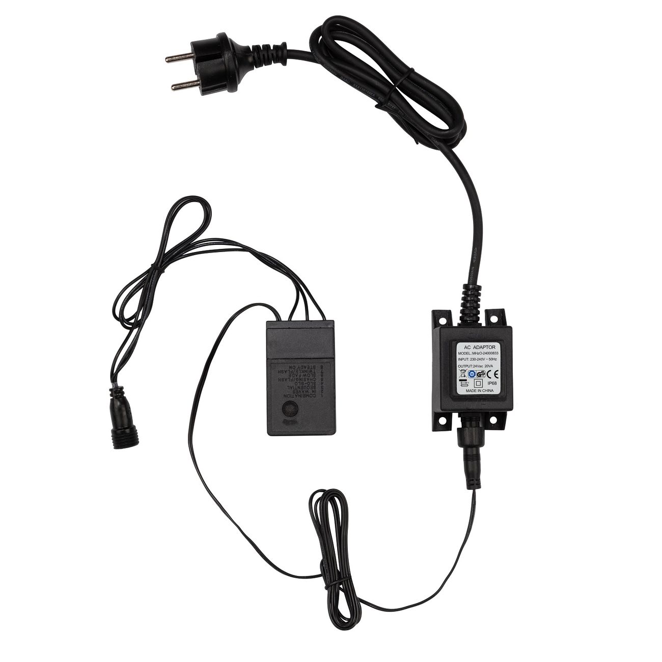 Эта модель представляет собой несколько модулей со встроенными диодами, соединённых общим кабелем. Провод отличается повышенной прочностью и высоким классом влаго- и пылезащиты. Лампы не выделяют тепло, поэтому не навредят живым насаждениям. Трансформатор предохраняет устройство от поломки в результате скачков напряжения.