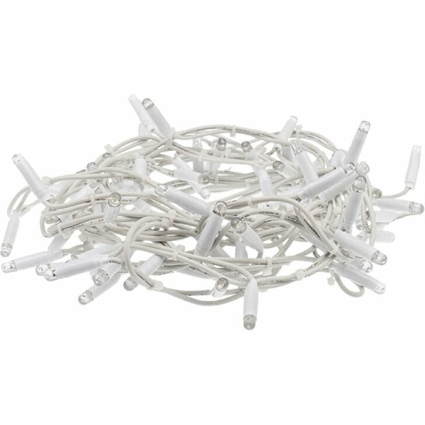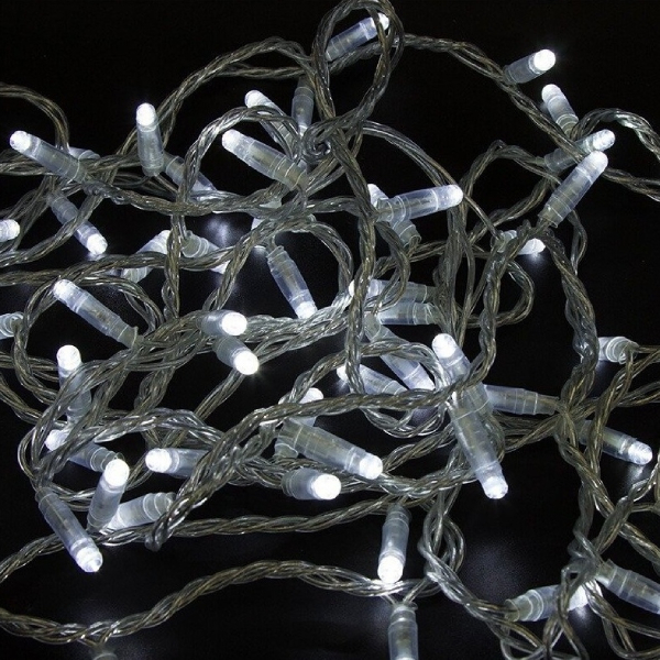 Эта модель состоит из прозрачного полимерного провода, встроенные LED-лампы «смотрят» в разные стороны, а каждая пятая из них мерцает. В комплекте есть трансформатор, который понижает напряжение при скачках в электросети, что предотвращает перегорание источников.