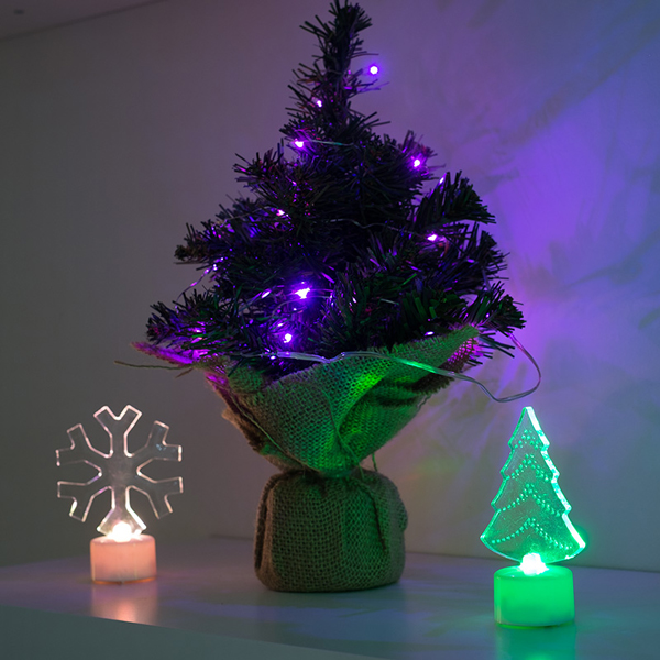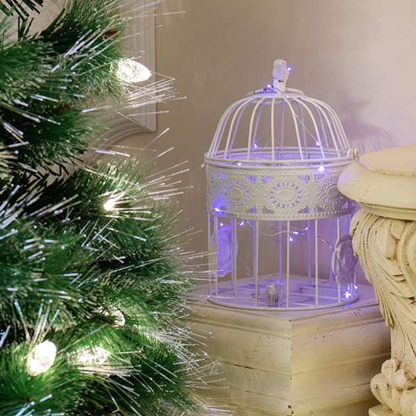 Изделие состоит из медного серебристого провода длиной 2 м. На нём расположены 20 светодиодов с постоянным режимом свечения. Степень защиты IP20 позволяет использовать декор в помещениях с сухим воздухом и хорошим отоплением.