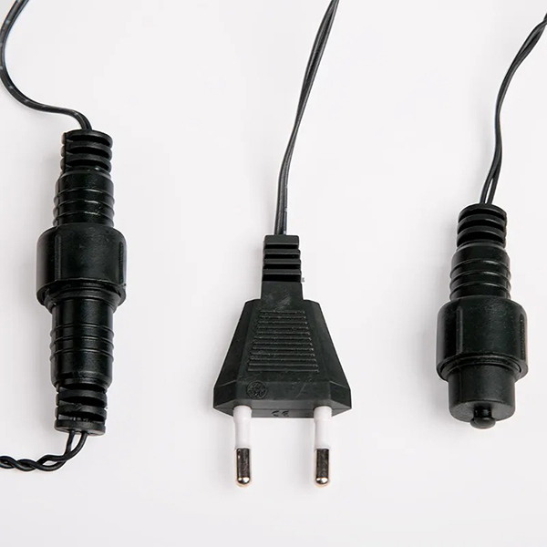 На тонком кабеле расположены фонарики, которые горят одним цветом без мигания. Шнур тёмно-зелёного цвета, поэтому его практически не видно на ёлке, создаётся ощущение, что лампочки просто висят на ней. Длина провода – 3 м, этого хватит для украшения даже самой высокой пушистой красавицы.