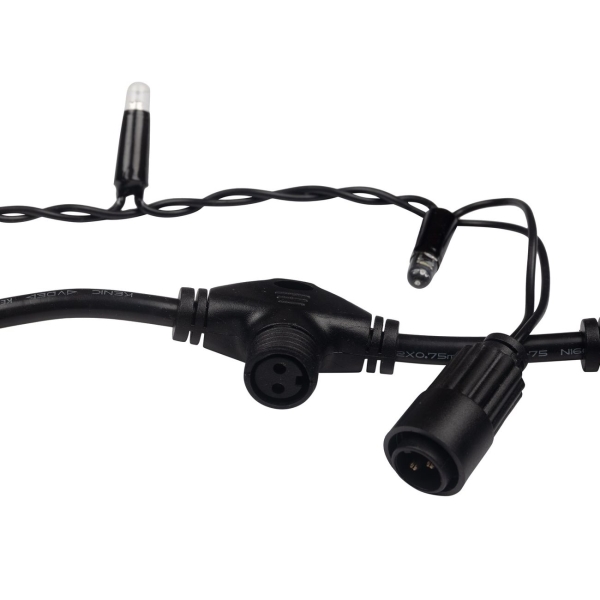 Основа этой модели – гибкий шнур-шина. С него свисают нити со встроенными диодами. Конструкция обладает высокой степенью защиты, что позволяет размещать её на улице. Гирлянде не страшны пыль и вода. С помощью встроенного разъёма и штепселя по краям основного провода вы сможете объединить в одну сеть несколько подобных украшений, чтобы сформировать большое полотно.