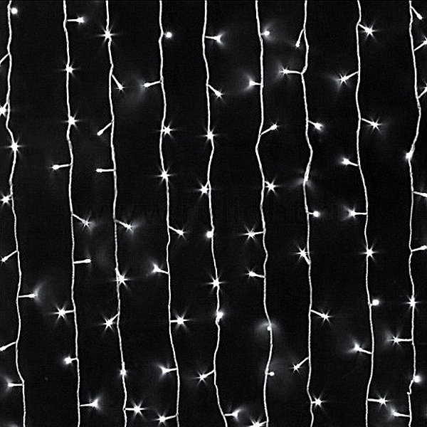 Основа этой модели – гибкий шнур-шина. С него свисают нити со встроенными диодами. Конструкция обладает высокой степенью защиты, что позволяет размещать её на улице. Гирлянде не страшны пыль и вода. С помощью встроенного разъёма и штепселя по краям основного провода вы сможете объединить в одну сеть несколько подобных украшений, чтобы сформировать большое полотно.