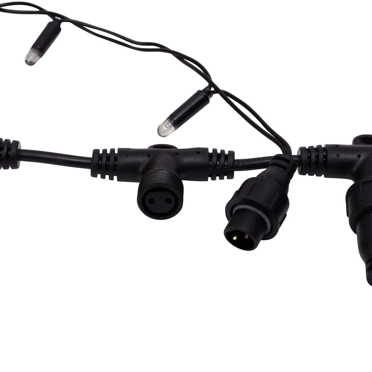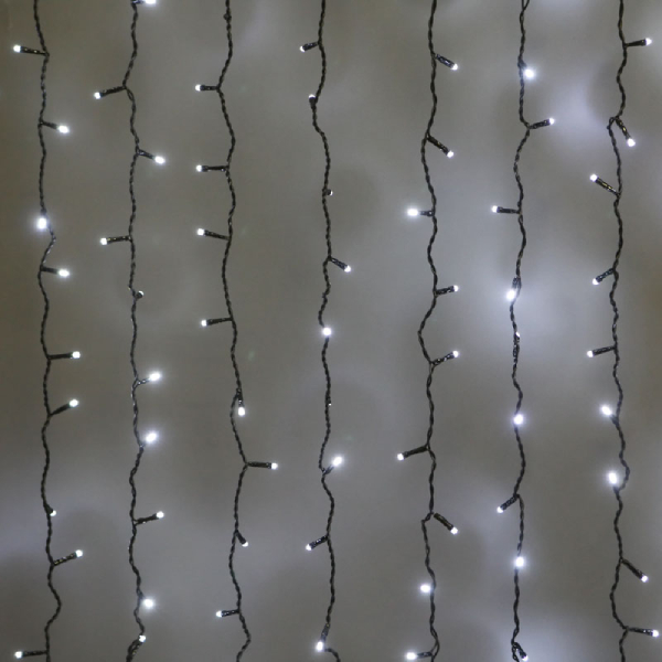 Основа этой модели – гибкий шнур-шина. С него свисают нити со встроенными диодами. Конструкция обладает высокой степенью защиты, что позволяет размещать её на улице. Гирлянде не страшны пыль и вода. С помощью встроенного разъёма и штепселя по краям основного провода вы сможете объединить в одну сеть несколько подобных украшений, чтобы сформировать большое полотно.