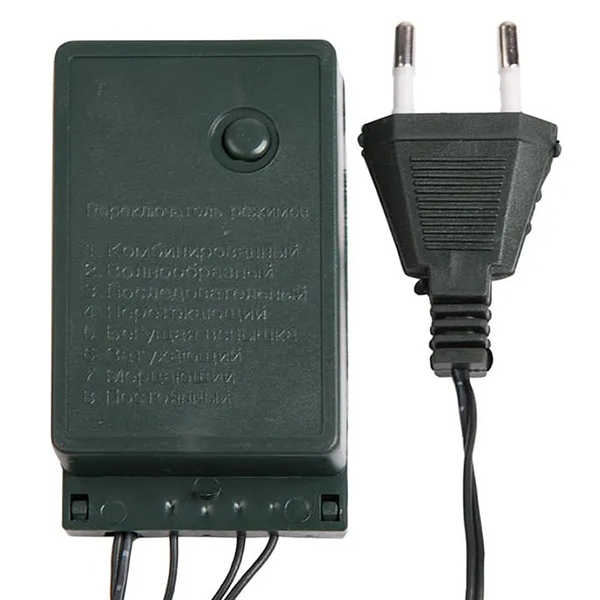 Модель представляет собой длинный провод, на котором с равными промежутками расположены 80 светодиодов разных цветов. Многопрограммный контроллер имеет восемь режимов свечения – экспериментируйте с удовольствием. Декор может использоваться для декора пушистой красавицы, а также любого предмета интерьера.