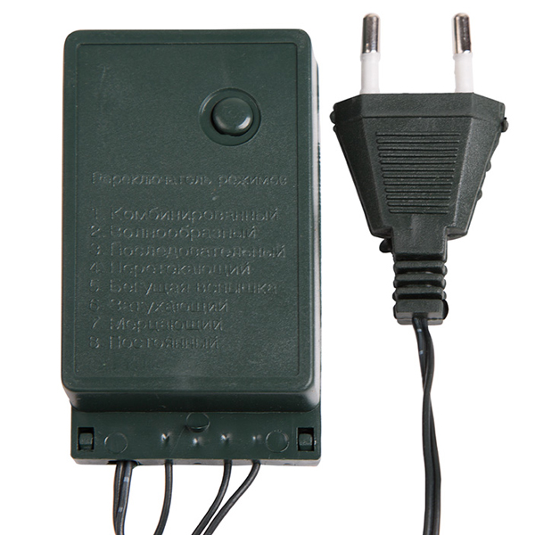 Модель представляет собой длинный провод, на котором с равными промежутками расположены 25 светодиодов белого цвета. Многопрограммный контроллер имеет восемь режимов свечения – экспериментируйте с удовольствием. Декор может использоваться для декора пушистой красавицы, а также любого предмета интерьера.