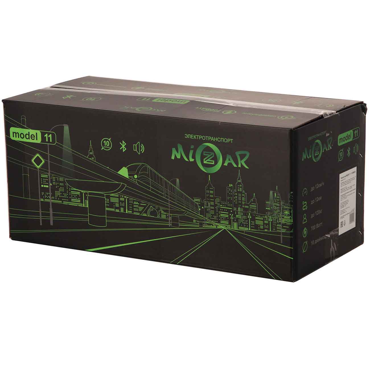 Гироскутер Mizar 11 – персональный транспорт для перемещения по городу. Он оснащён 10-дюймовыми колёсами и развивает скорость до 12 км/ч.