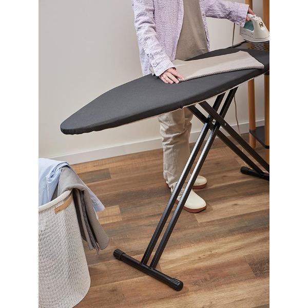 Материалы: сталь, хлопок, пенополиуретан, фетр, пластик. Размер в разложенном состоянии: 151х45х70/93 см. Размер в сложенном состоянии: 160х45х8 см. Минимальная высота 70 см. Максимальная высота 93 см. Размер гладильной поверхности 123х44 см. Размер подставки для утюга: 27,5х45 см. Цвет чехла: графит.