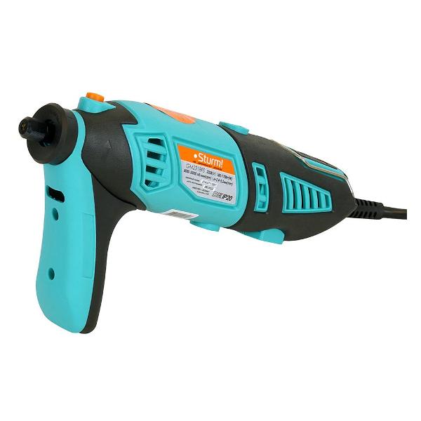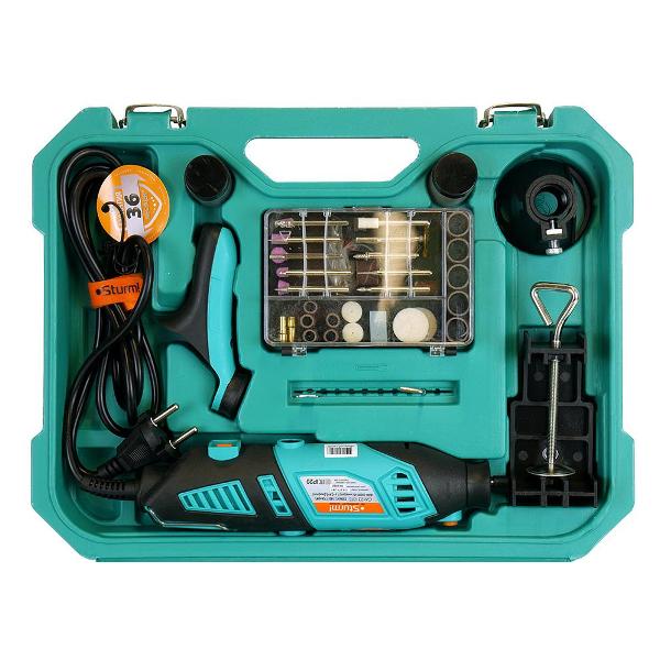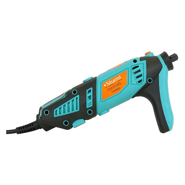 Гравер и мини-дрель Sturm! GM2318FS в черном корпусе с бирюзовым элементами поставляются в кейсе для хранения. Габариты набора составляют 56х9х28 см. Масса устройства — 2,5 кг. В комплекте гибкий вал. Уровень потребляемой мощности — 180 Вт. Питание осуществляется от сети. Длина кабеля питания — 180 см.