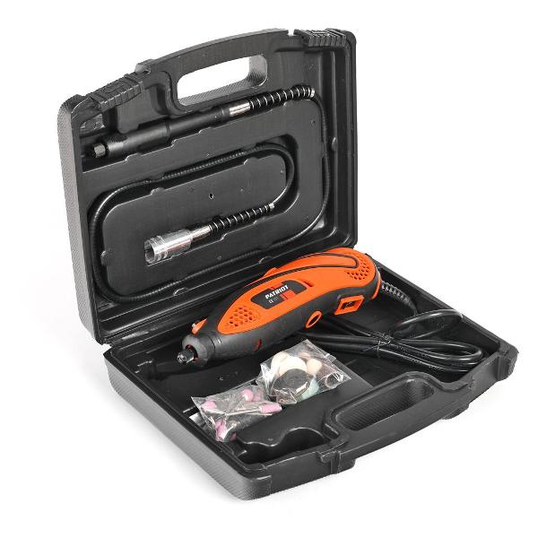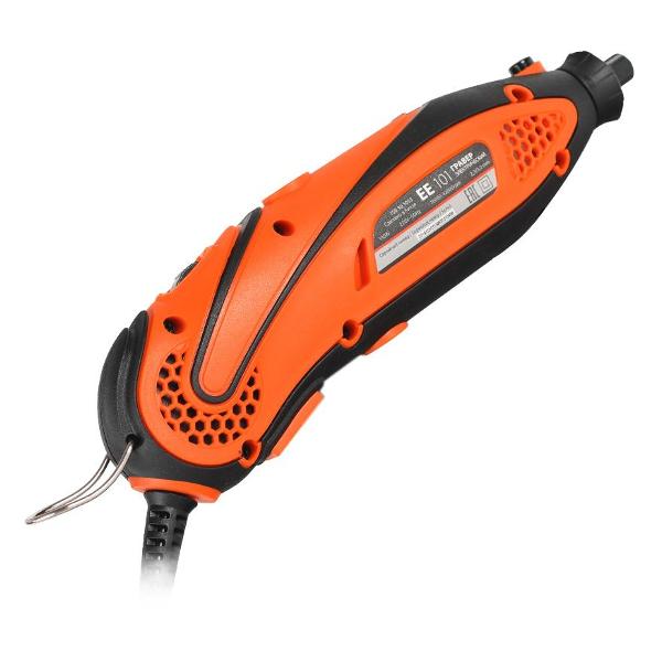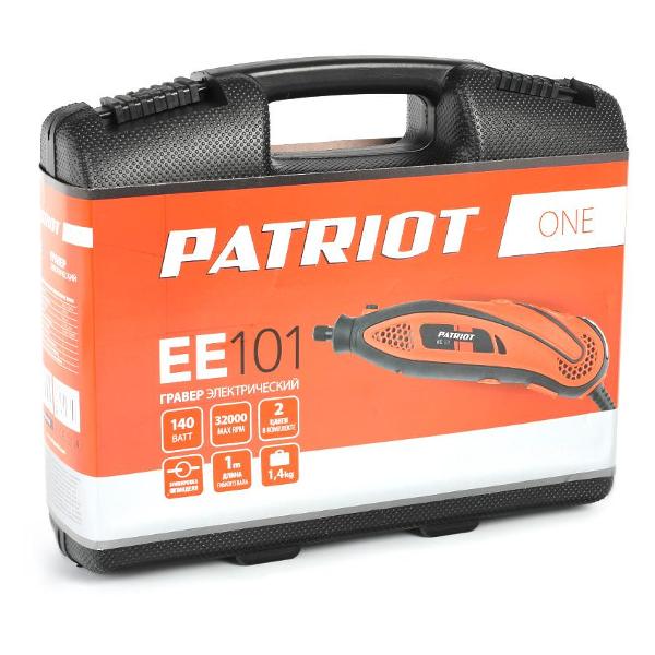 Гравер Patriot EE 101 The One — модель в корпусе из металла и пластика, оснащенная прорезиненной рукояткой, которая обеспечивает надежный хват. Устройство предназначено для обработки поверхностей из стали, керамики и стекла. В зависимости от насадки инструмент способен осуществлять резку, шлифовку, полировку, гравировку. В основе работы лежит высокопроизводительный щеточный двигатель мощностью 140 Вт, который дает возможность выполнить задачи любого уровня сложности. Максимальное число достигает 32000 в минуту.