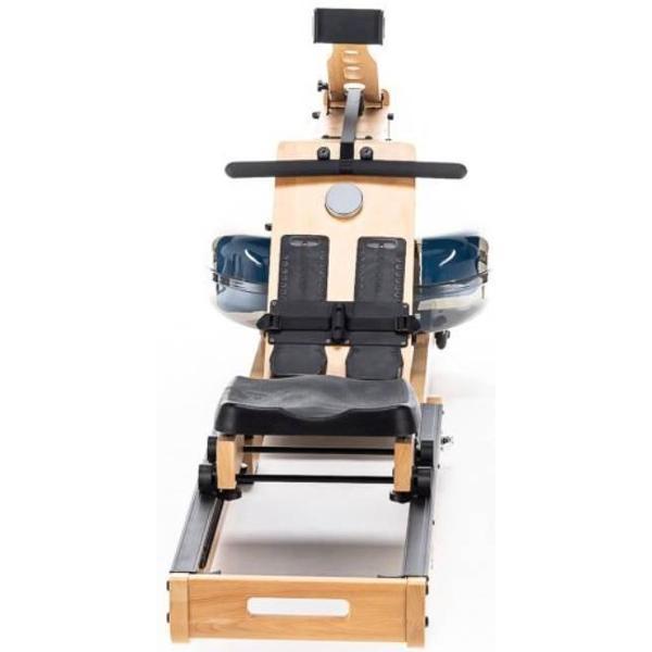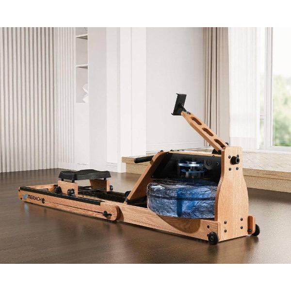 Гребной тренажер Merach MR-950W1Z коричневого цвета оснащен LED-дисплеем диаметром 6,8 см. Индикация показывает время занятий, количество сожженных калорий, дистанцию, скорость, количество гребков. Габариты модели — 60х55х213 см. Вес изделия — 35 кг. Складной корпус оснащен компенсаторами неровности пола, эргономичным сиденьем. Тренажер выдерживает вес до 150 кг. Тип системы нагружения — электромагнитный. Присутствуют удобные колесики для перемещения, бак на 20 л. Рама сделана из прочного дерева. Прибор можно хранить в вертикальном положении.