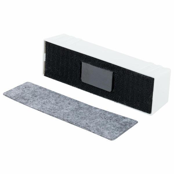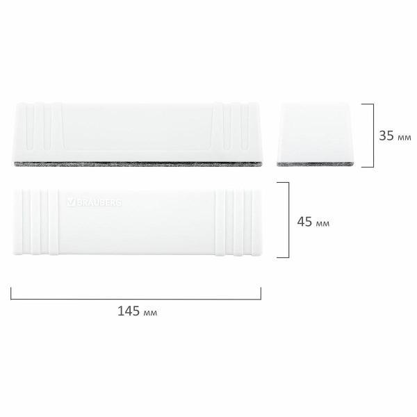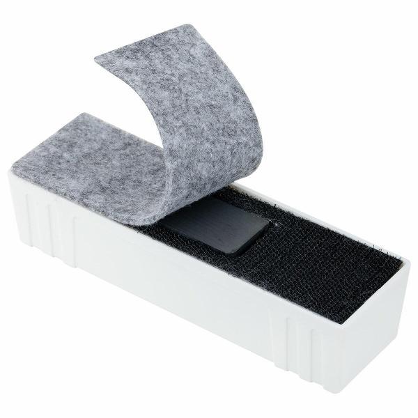 Выполнен из прочного пластика белого цвета в минималистичном дизайне. Обладает высоким качеством стирания. Стиратель прямоугольной формы со встроенным магнитом отлично крепится к любой магнитно-маркерной доске, что позволяет расположить его в любом месте рабочей поверхности доски. Размер – 45х145 мм.