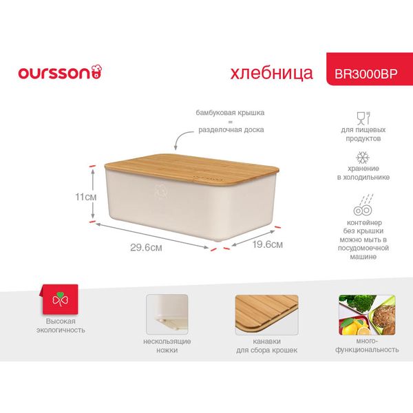 Вы можете купить Хлебница Oursson Ivory (BR3000BP/IV) в магазинах М.Видео по доступной цене. Хлебница Oursson Ivory (BR3000BP/IV): подробное описание, фото и отзывы реальных покупателей, характеристики, возможность скачать инструкции и подобрать аксессуары.