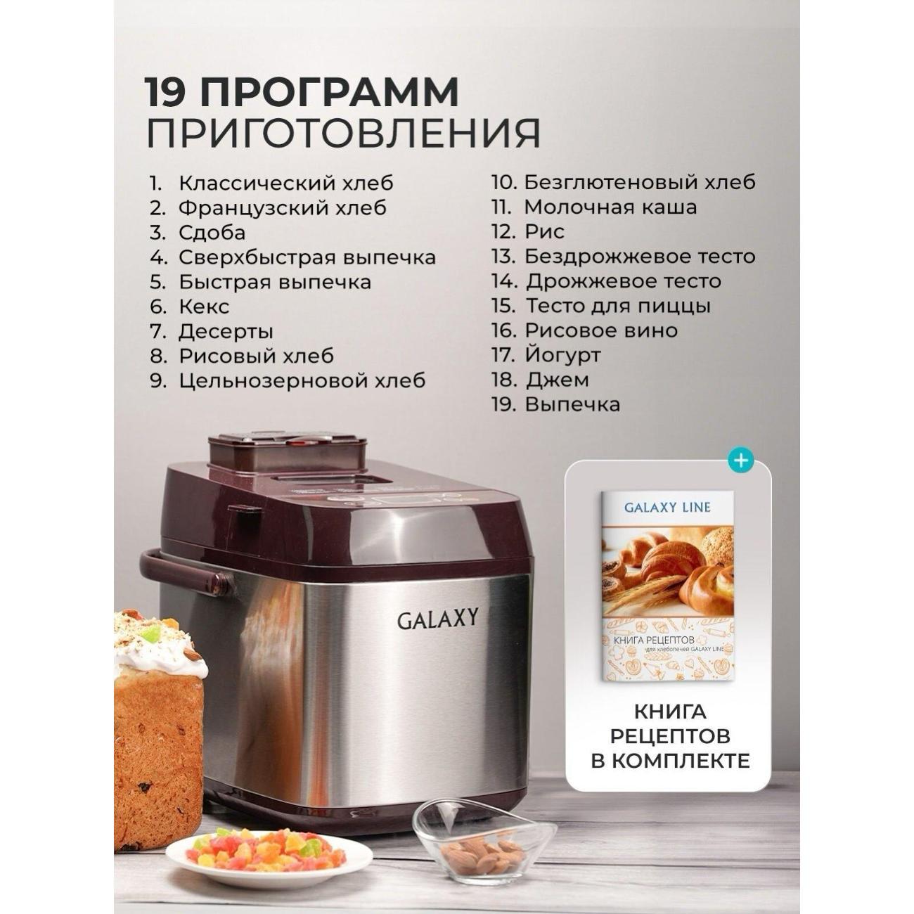 Вы можете купить Хлебопечка Galaxy LINE GL2700 в магазинах М.Видео по доступной цене. Хлебопечка Galaxy LINE GL2700: подробное описание, фото и отзывы реальных покупателей, характеристики, возможность скачать инструкции и подобрать аксессуары.
