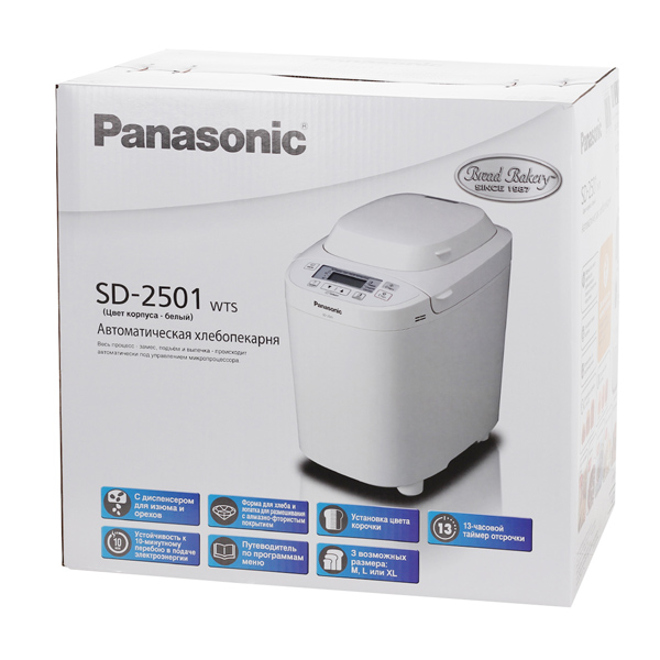 Выбирала хлебопечь по отзывам из интернета - все модели этой фирмы отмечены только положительными оценками,поэтому несомненно свой выбор оставила на фирме "ПАНАСОНИК",а уж о современной модели 2501 скажу только хорошее - печет отлично(если соблюдать все рекомендации производителя и выбраны хорошего качества мука и дрожжи,"ПАНИ СОНЯ" точно не подведет). Испробовала многие рецепты хлеба и сладкой выпечки - все на 5 баллов,съедается в улет!Хлеб и булки не покупаем вообще ,пеку каждый день,бывает и не один раз в день,очень довольна вся семья.Пользовалась программами "тесто для пиццы","лапши,"вареников" - значительно экономит ваше время на кухне и не надо самой мараться,а потом и убирать.Диспансер для изюма,отсрочка программы,бесшумность - очень важные положительные моменты!