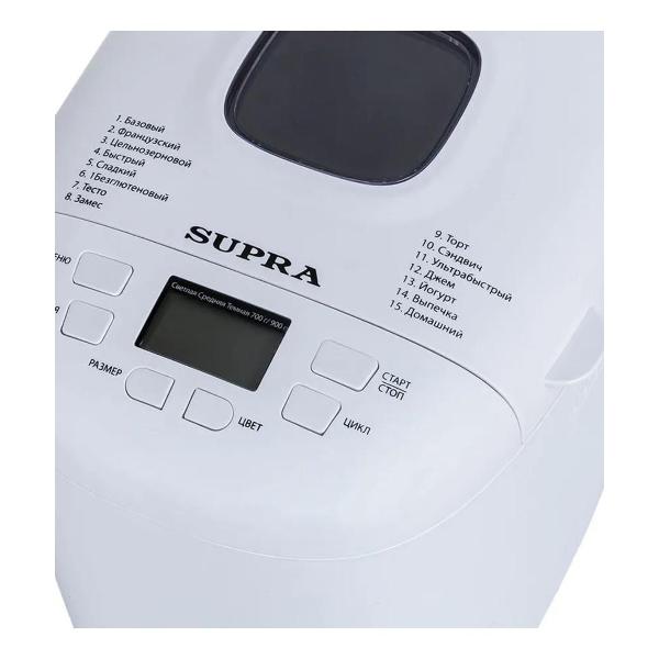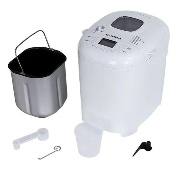 Хлебопечка Supra BMS-240 оснащена 15 программами для хлеба и сладкой выпечки. С прибором в комплекте идет книга рецептов. Максимальный размер буханки — 650 г. Три варианта выбора цвета корочки позволят установить степень поджаристости — светлая, средняя или темная. Функция поддержания температуры обеспечит сохранение выпечки теплой после отключения программы. Встроен режим ручной настройки программ. Максимальное время отложенного старта составляет 13 ч. Прибор можно использовать и для приготовления джема, варенья, натурального йогурта, мармелада.