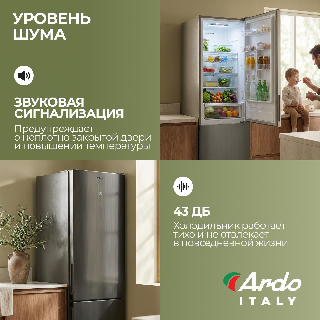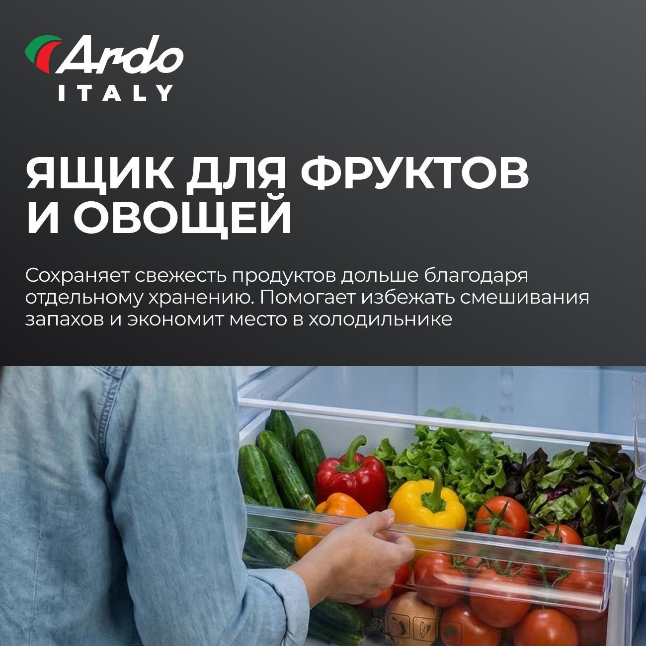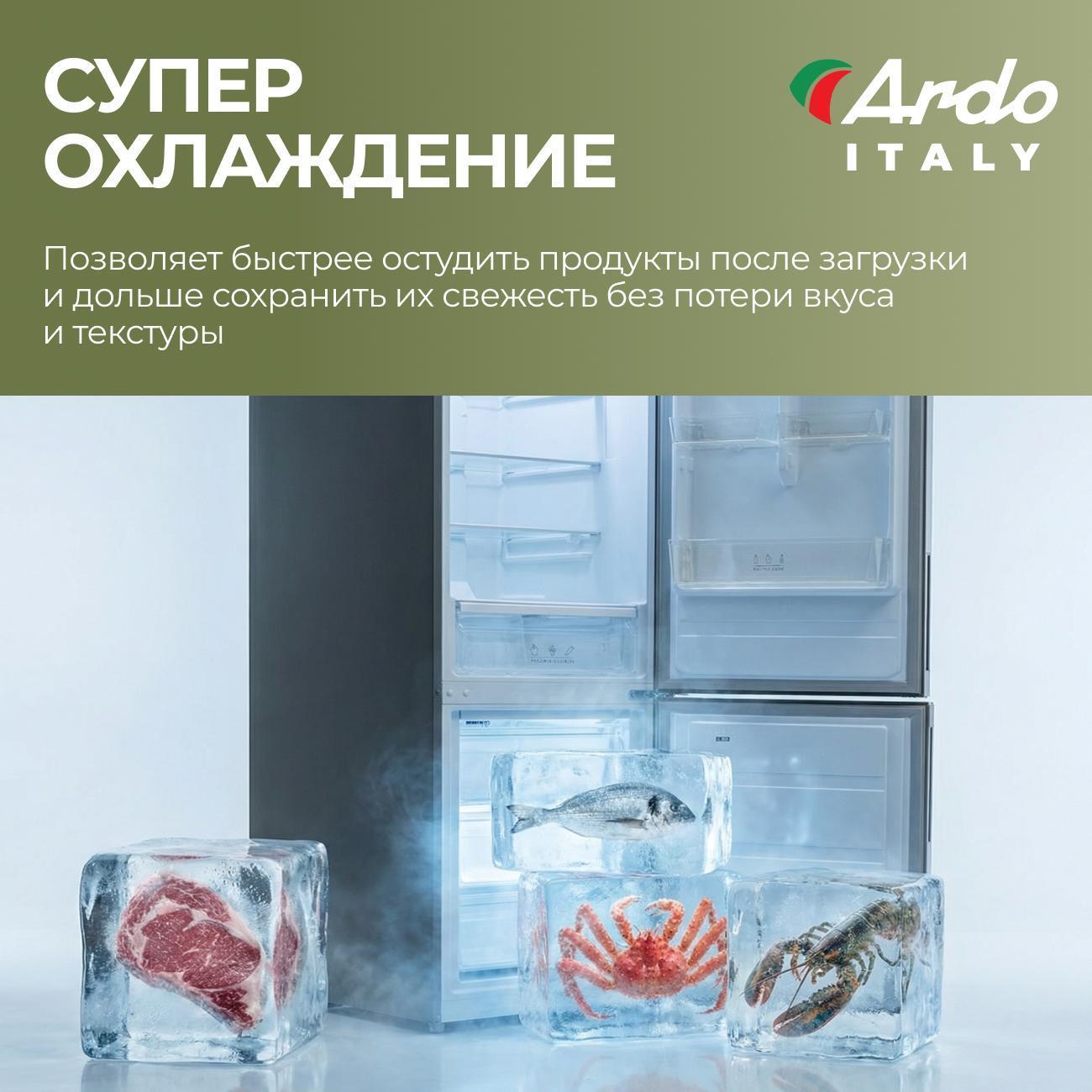 Холодильник Ardo сразу привлек внимание своим современным дизайном и продуманными характеристиками. Его компрессор работает тихо и эффективно, а объем самое то, что надо Размеры отлично вписываются в кухню. Подсветка внутри камеры светит приятно, а система No Frost избавляет от необходимости размораживания, что существенно экономит время. Электронное управление интуитивно понятно, все функции легко настраиваются. Холодильником одним словом - Доволен.