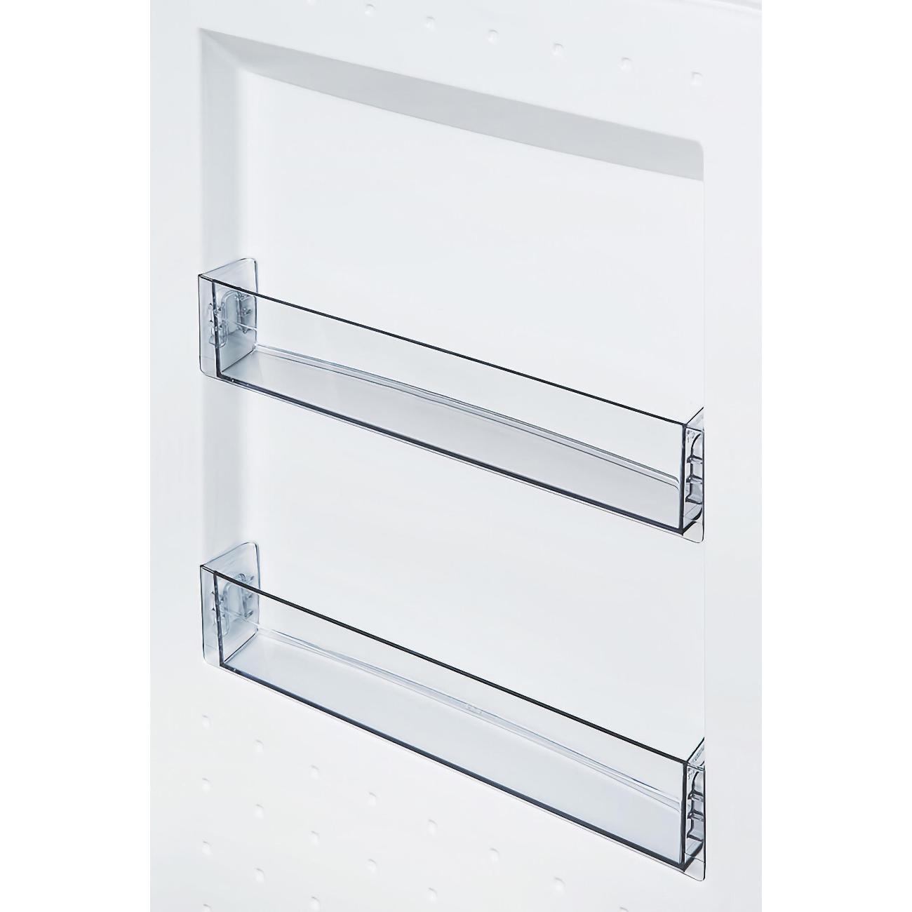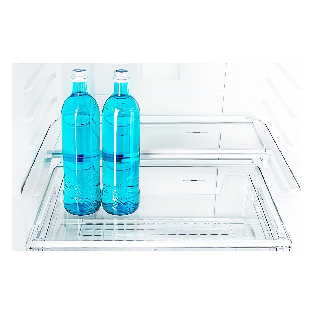 Рациональное распределение пространства: полезный объем холодильной камеры — 235 л, 94 л — морозильная. Холодильная камера снабжена пятью стеклянными полками, складной полкой для бутылок, четырьмя навесными на дверь карманами. Для удобства предусмотрено внутреннее светодиодное освещение.