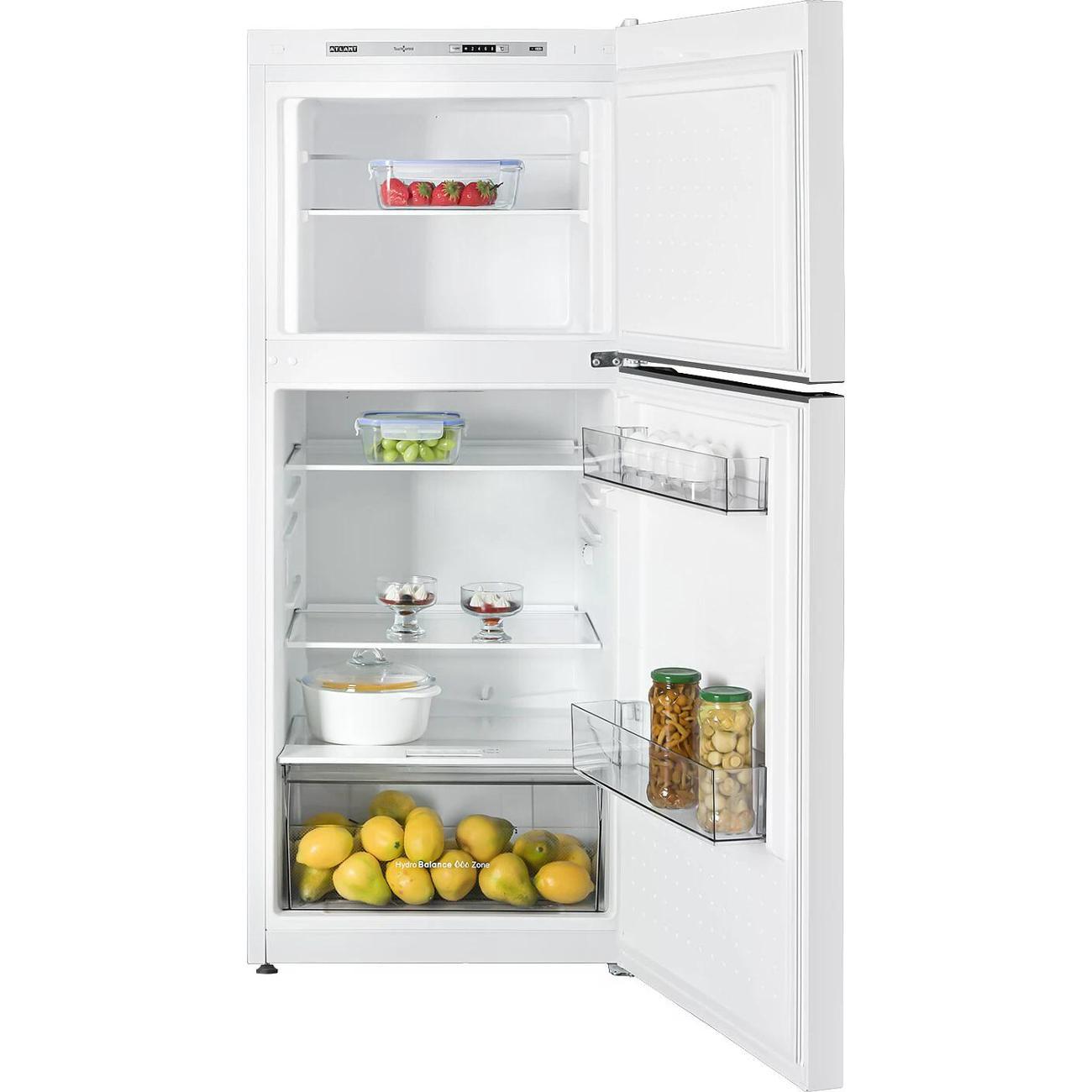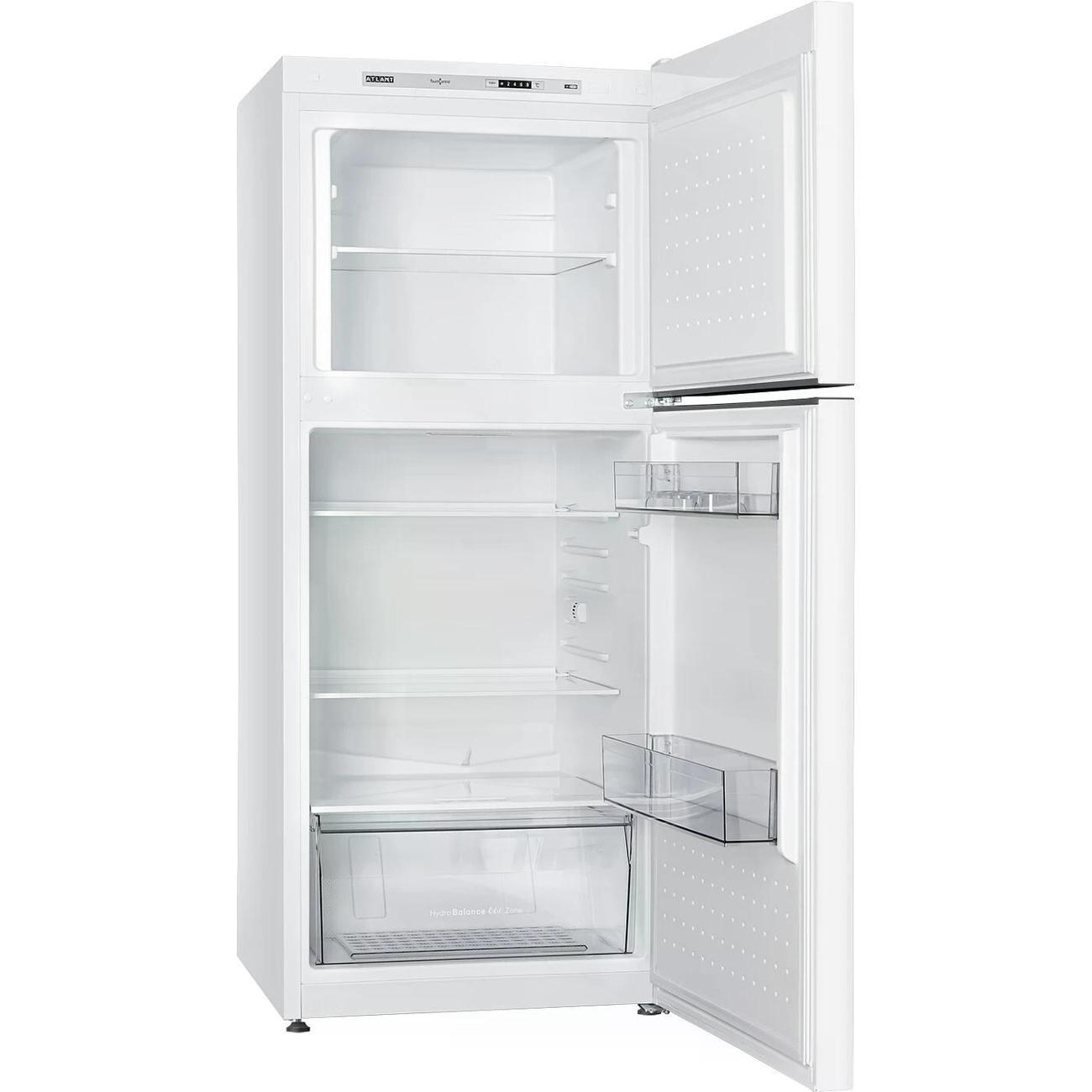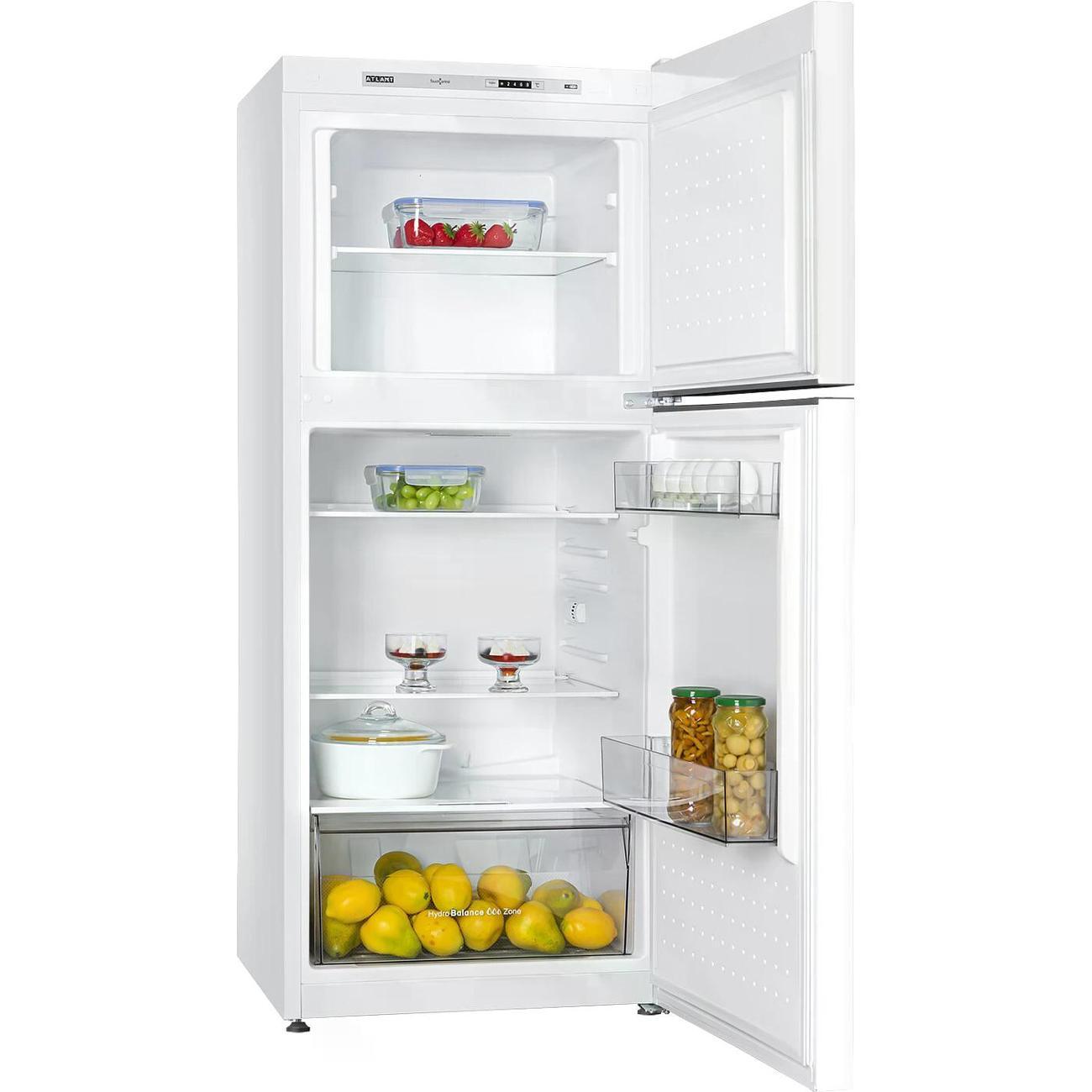 Холодильник Atlant ХМ 3608-109, белый — двухкамерная модель полезным объемом 222 л, из которых 158 л приходятся на холодильное отделение, 64 л — на расположенное сверху морозильное. Габариты модели — 145х59,5х62,9 см.