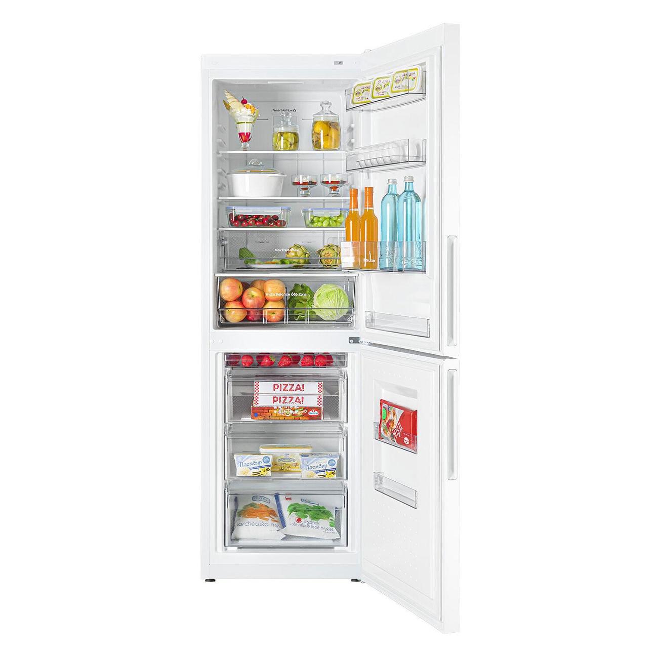 Холодильник с нижней морозильной камерой ATLANT ХМ 4621-181 NL оборудован камерой для охлажденных продуктов емкостью 182 л и отсеком для замороженных продуктов емкостью 159 л. В холодильной камере расположены четыре полки, три из которых регулируются по высоте, четыре полки на дверце и контейнер для хранения овощей. Морозильный блок включает в себя пять полок с прозрачными ящиками.