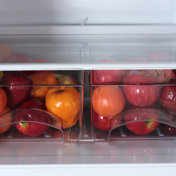 В холодильном отделении предусмотрены четыре полки из прочного закалённого стекла и вместительные пластиковые ящики для овощей и фруктов. В морозильном отделении установлены выдвижные ящики из прочного гигиеничного пластика. Благодаря этому хозяева могут распределить продукты для хранения так, как считают необходимым. Для освещения установлена лампа накаливания, она делает поиск нужных продуктов особенно простым и быстрым.