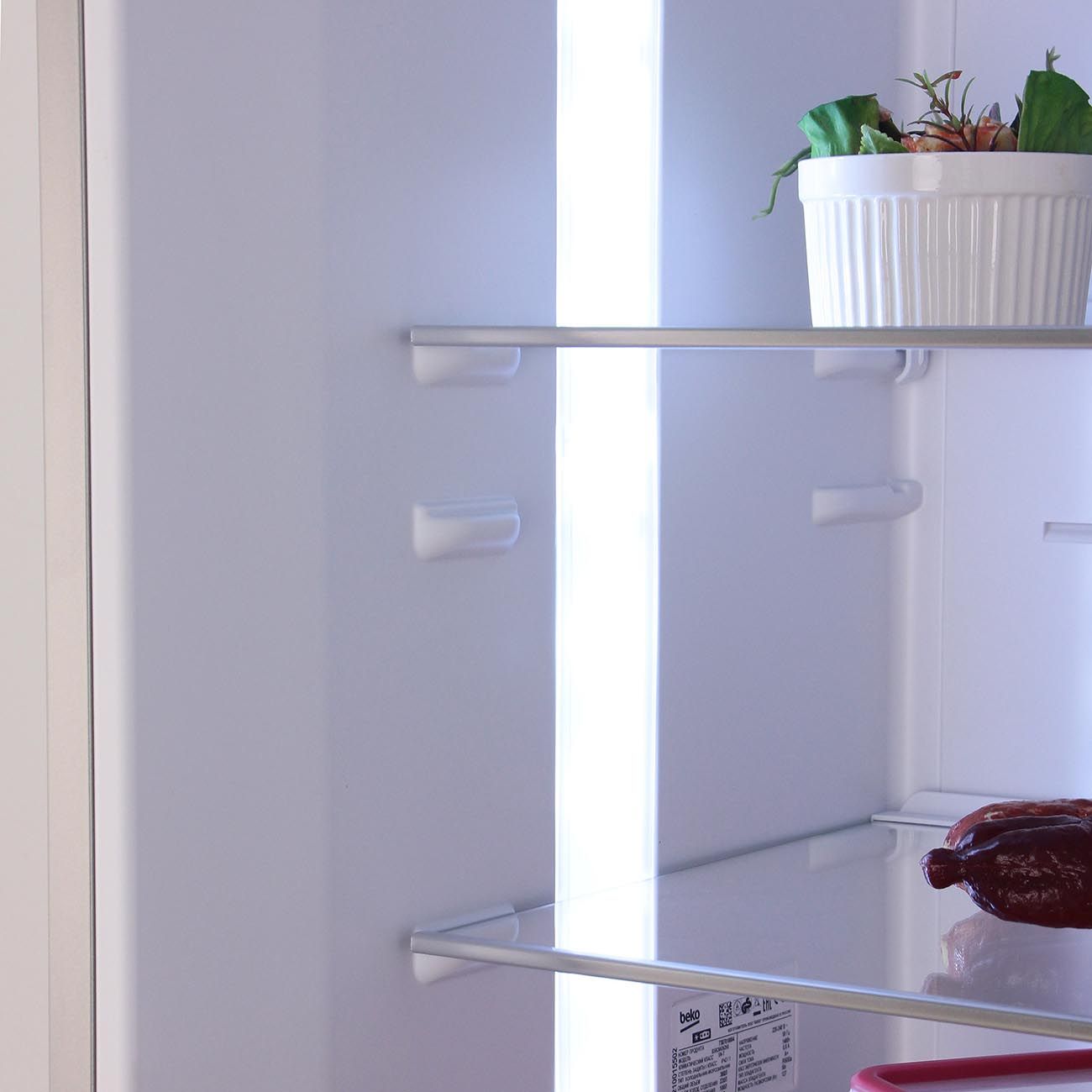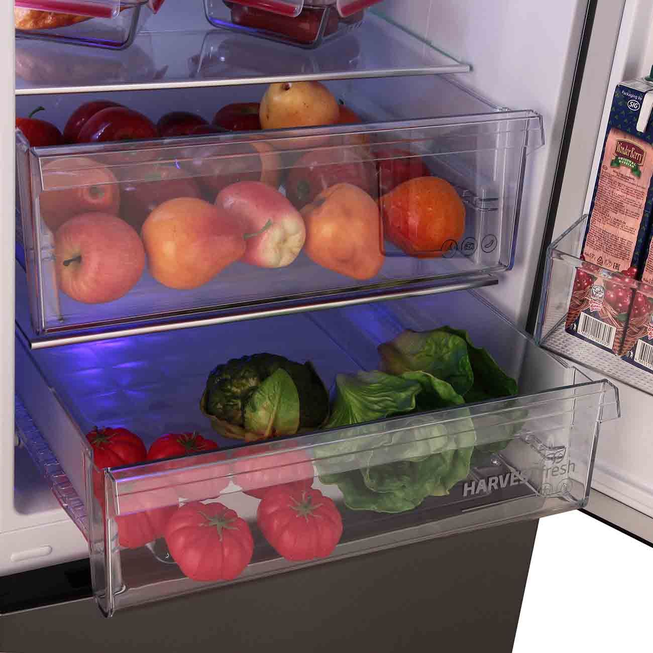 Отличный холодильник по выгодной цене. Брали для большой семьи из 4 человек, хватает с запасом. Он высокий и вместительный, полки можно переустанавливать, поэтому одну убрали и сделали две больших и одну маленькую. Помещается три большие кастрюли и утятница. Предусмотрена система автоматического размораживания в обеих камерах, поэтому никакой наледи не скапливается. Достаточно протирать периодически от загрязнений, и выглядит как новый. Для овощей и фруктов отдельный ящик, причем тоже предусмотрена специальная система, чтобы они долго оставались свежими. Бананы не темнеют, овощи не морщатся и не мякнут. Я довольна.